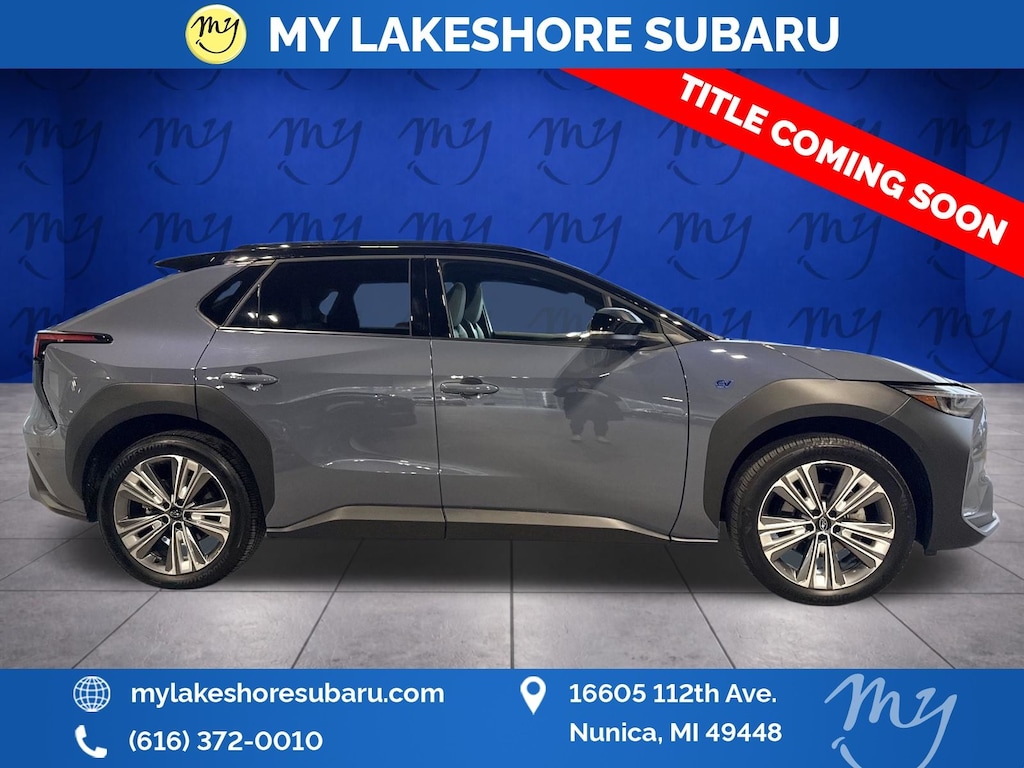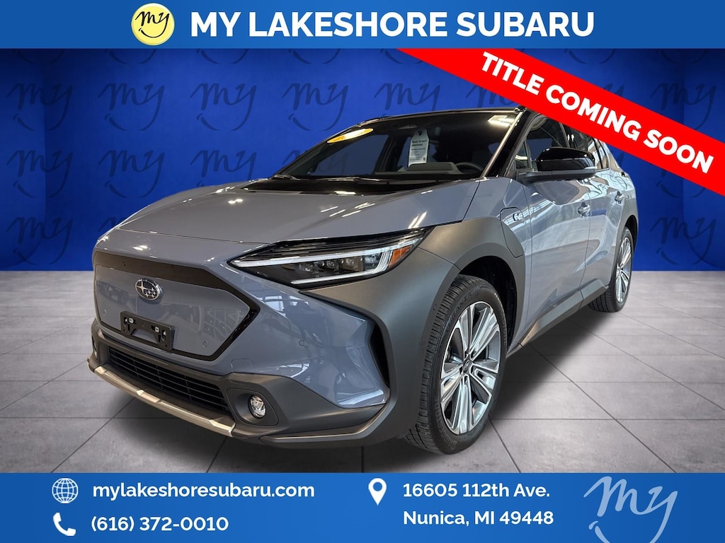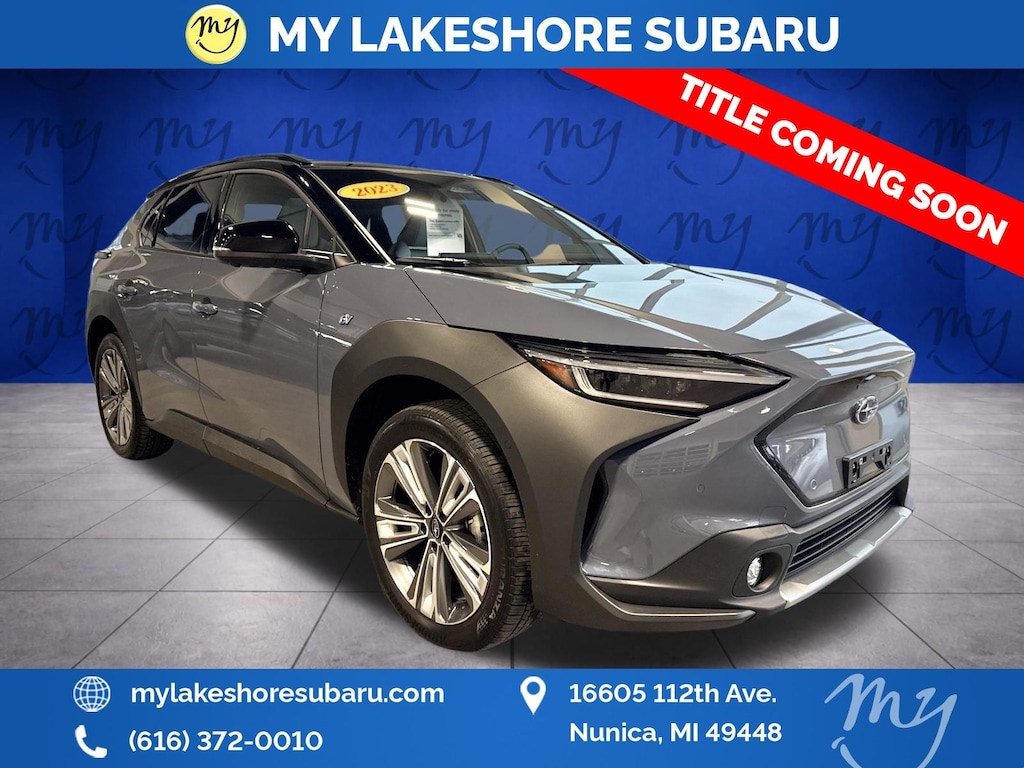 Solterra Touring, Electric Motor, Harbor Mist Gray Pearl 2-Tone, *ALL WHEEL DRIVE*, *APPLE CARPLAY & ANDROID AUTO*, *BACKUP CAMERA*, *BLIND SPOT MONITORING*, *HEATED STEERING WHEEL*, *LANE DEPARTURE WARNING*, *LEATHER HEATED POWER SEATS*, *MOONROOF*, *PREMIUM SOUND*, *SUNROOF*. Certified. Harbor Mist Gray Pearl 2-Tone 2023 Subaru Solterra Touring AWD 1-Speed Automatic Electric Motor