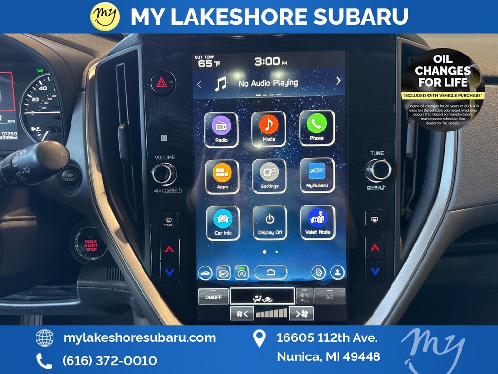 My Lakeshore Subaru is your #1 choice in Michigan to get the BEST PRICE on used vehicles and BEST value for your trade. The My Lakeshore Subaru team is ready to provide you with a world-class experience, ensuring that you find the perfect vehicle that fits all your needs. Every vehicle has been through a full safety inspection completed by certified technicians and fully detailed. We sell many makes and models, Certified Pre-owned Subaruâs and Pre-owned Vehicles with years from 2025-2024-2023-2022-2021-2020-2019-2018-2017-2016-2015-2014-2013-2012-2011-2010-2009-2008-2007 and all makes Audi, BMW, Chevrolet, Toyota, Volkswagen, Kia, Hyundai, Mazda, Mercedes, Dodge, Chrysler, Jeep, Ram, Lincoln, Honda, Subaru, and many models like Crosstrek, Outback, Forester, Accent, Legacy, WRX, BRZ, Solterra, and more. Take advantage of our VIP experience by calling 231-867-6957 to schedule a test drive. Read our customer reviews and view our entire selection of preowned vehicles at www.mylakeshoresubaru.com, or stop by today, located at 16605 112th Ave, Nunica, MI 49448. 27/34 City/Highway MPG