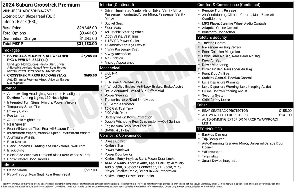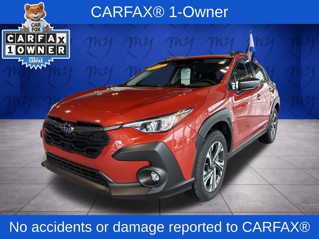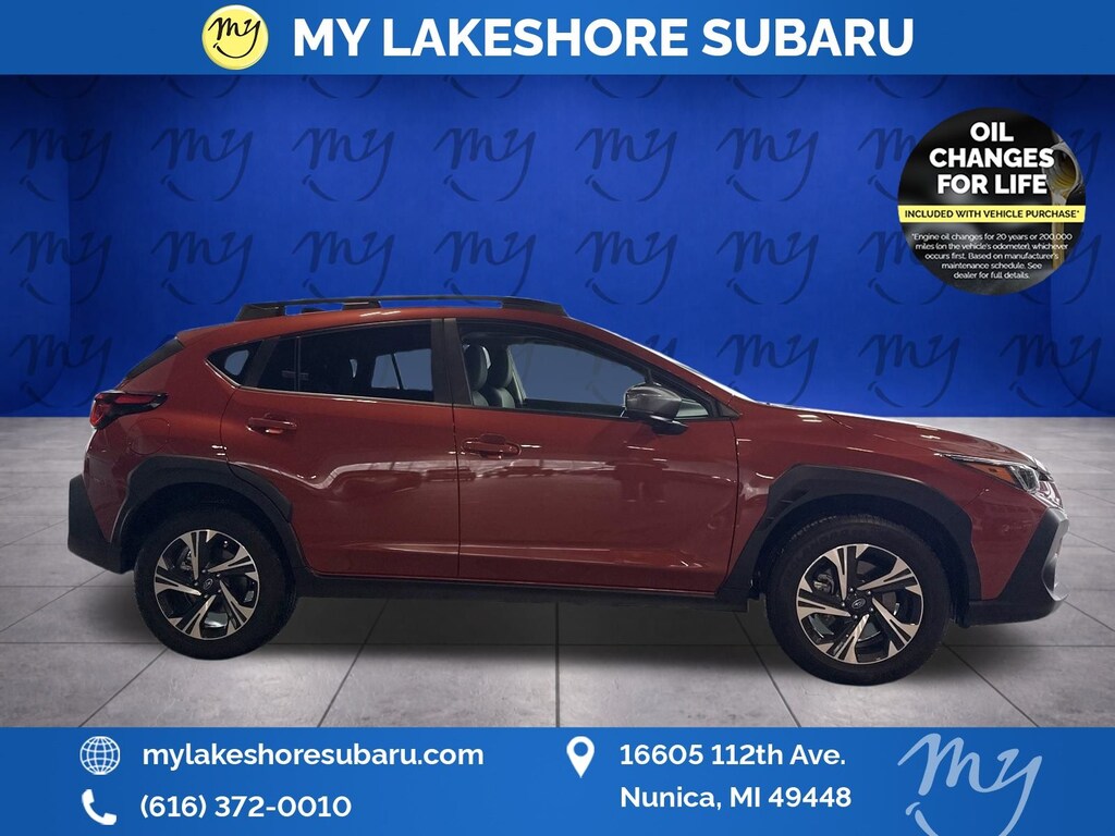 Crosstrek Premium, Sun Blaze Pearl, *ALL WHEEL DRIVE*, *APPLE CARPLAY & ANDROID AUTO*, *BLIND SPOT ALERT*, *EYESIGHT Driver Assist*, *HEATED SEATS*, *LANE DEPARTURE WARNING*, *LOCAL TRADE*, *MOONROOF*, *OIL CHANGES for LIFE*, 10-Way Power Driver's Seat, All-Weather Package, Auto-Dimming Exterior Mirror w/Approach Light, Auto-Dimming Mirror w/Compass & HomeLink, Blind Spot Detection w/Rear Cross-Traffic Alert, BSD/RCTA & Moonrf & All Weather Pkg & Pwr Dr. Seat, Crosstrek Mirror Package, Heated Exterior Mirrors, Heated Front Seats, Heated Wipers, Power Moonroof. Certified. Sun Blaze Pearl 2024 Subaru Crosstrek Premium AWD Lineartronic CVT 2.0L 4-Cylinder DOHC 16V