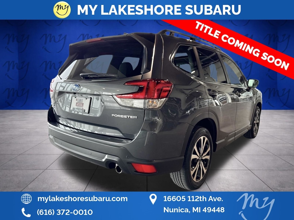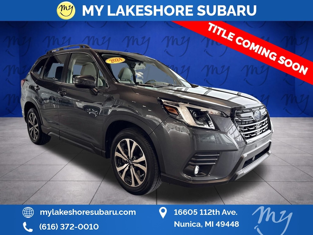 Forester Limited, Magnetite Gray Metallic, *ALL WHEEL DRIVE*, *APPLE CARPLAY & ANDROID AUTO*, *EYESIGHT Driver Assist*, *HEATED STEERING WHEEL*, *LANE DEPARTURE WARNING*, *LEATHER HEATED POWER SEATS*, *LOCAL TRADE*, *OIL CHANGES for LIFE*, *PANORAMIC MOONROOF*, harman/kardon 9-Speaker Audio System, Heated Steering Wheel, Nav & harman/kardon & RAB & Heated Steering Wheel, Radio: Subaru STARLINK 8.0" Multimedia Nav System, Reverse Automatic Braking System (RAB). Certified. Magnetite Gray Metallic 2024 Subaru Forester Limited AWD Lineartronic CVT 2.5L 4-Cylinder DOHC 16V