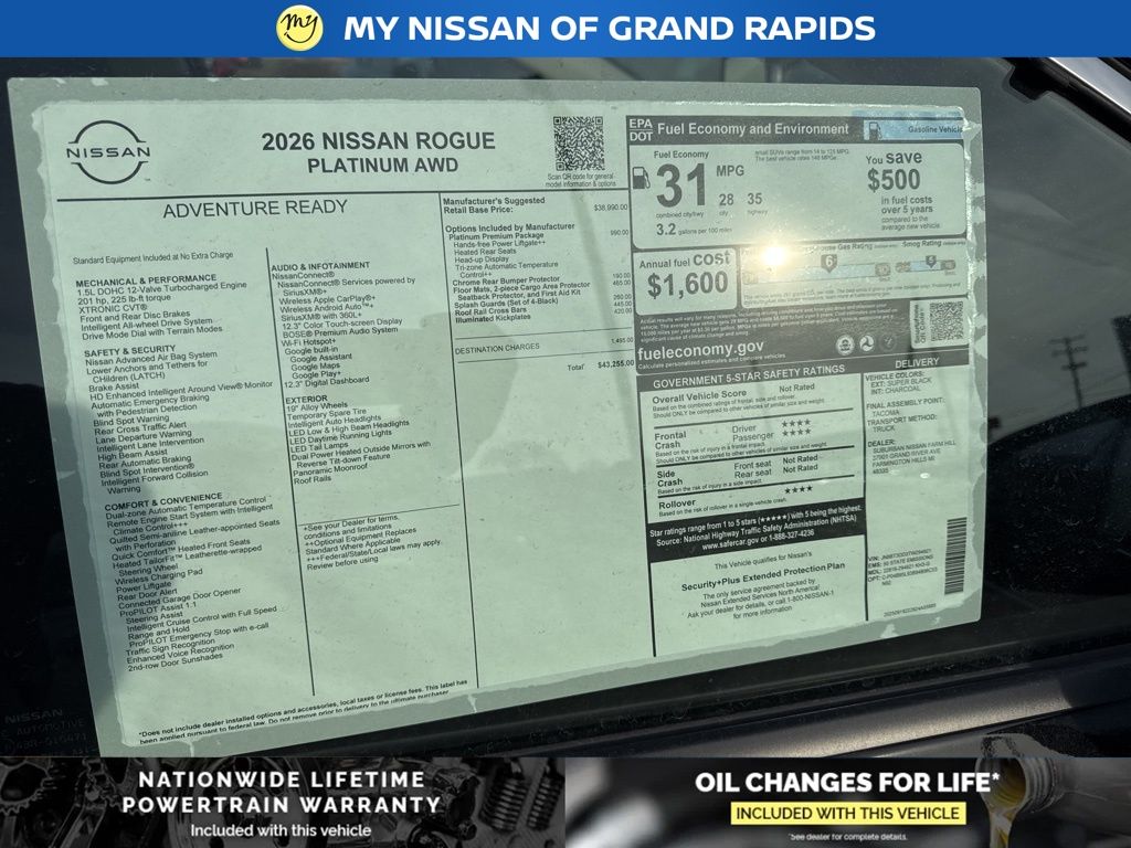 My Auto Grand Rapids is proud to service customer's saving you time & money on any pre-owned vehicle! See dealer for complete details, dealer is not responsible for pricing errors, all prices, plus tax, title, plate, doc fees, and includes all manufacturer rebates. Serving Grand Rapids and all of our surrounding cities like Grandville, Rockford, Byron Center, Kentwood, Norton Shores, Greenville, East Grand Rapids, Holland, Ada, Northview, Jenison, Lansing, Kalamazoo, Walker, Comstock Park, Grand Haven, Holland, Wyoming, North Muskegon, Fruitport, Hudsonville, Spring Lake, Coopersville, Cedar Springs, Wayland, Battle Creek, Allendale, and anywhere in the great state of Michigan. When you purchase a vehicle from us, new or used, that is less than 10 years old and has less than 100,000 miles, and you automatically get Oil Changes For Life! Some of our used vehicles may be subject to unrepaired safety recalls. Check for a vehicle's unrepaired recalls by VIN at http://vinrcl.safercar.gov/vin/. Price includes: $3500 - Nissan Customer Cash. Exp. 03/31/2026