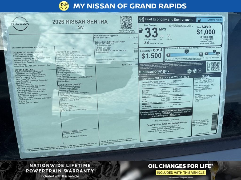 2026 Nissan Sentra SV I4 30/38 City/Highway MPG
