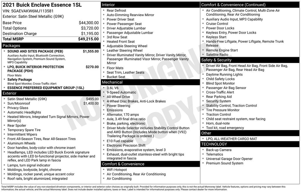 Recent Arrival! Satin Steel Metallic 2021 Buick Enclave Essence 3.6L V6 SIDI VVT AWD Odometer is 13347 miles below market average!