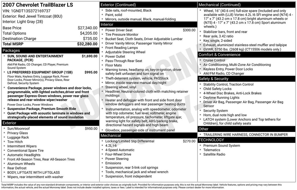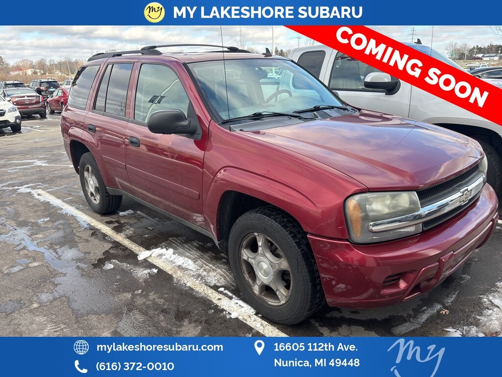 TrailBlazer LS, Bordeaux Red Metallic, *LOCAL TRADE*, Bose Premium Audio Speaker System Feature, Overhead Custom Console, Power Tilt-Sliding Sunroof w/Express-Open, Premium Smooth Ride Suspension Package, Sun, Sound & Entertainment Package. Bordeaux Red Metallic 2007 Chevrolet TrailBlazer LS 4WD 4-Speed Automatic with Overdrive Vortec 4200 4.2L I6 MPI DOHC