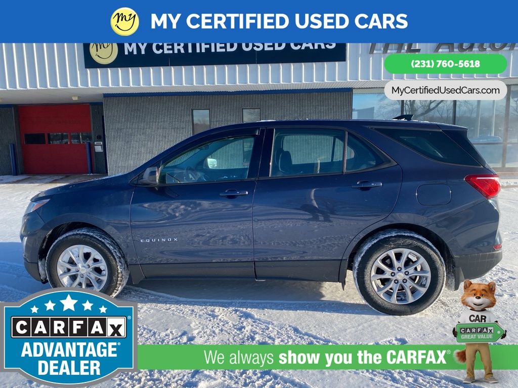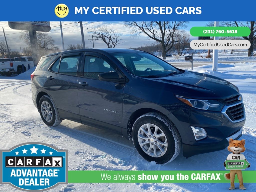 *SUPER BUY* ***2018 CHEVROLET EQUINOX LS AWD***, *APPLE CARPLAY & ANDROID AUTO*, *CRUISE CONTROL*, *HANDSFREE BLUETOOTH*, *REARVIEW CAMERA*, Exterior Parking Camera Rear, Preferred Equipment Group 1LS. MY Certified Used Cars of Muskegon is your #1 choice in Michigan to get the BEST PRICE on used vehicles and BEST value for your trade. The MY Certified Used Cars team is ready to provide you with a world-class experience, ensuring that you find the perfect vehicle that fits all your needs. Every vehicle has been through a full safety inspection completed by certified technicians and fully detailed. We sell many makes and models, Pre-Owned Vehicles with years from 2025-2024-2023-2022-2021-2020-2019-2018-2017-2016-2015-2014-2013-2012-2011-2010-2009-2008-2007 and all makes Audi, BMW, Chevrolet, Toyota, Volkswagen, Kia, Hyundai, Mercedes, Dodge, Chrysler, Jeep, Ram, Lincoln, Honda, Subaru, and many models like Bronco, Bronco Sport, Edge, Escapes, Expedition, Explorer, Fusions, Focus, Flex, F-150 Series, F-250, F-350, Super Duty Diesel Trucks, Maverick, Mustang MACH-E, Mustang, Ranger, Transit, Wrangler, Grand Cherokee, Grand Cherokee L, Wagoneer, Gladiator, Grand Caravan, RAM, RAM HEMI, and more. Take advantage of our VIP experience by calling 231-760-5618 to schedule a test drive. Read our customer reviews at www.mycertifiedusedcars.com/testimonials or view our entire selection of preowned vehicles at www.mycertifiedusedcars.com, or stop by today, located at 3692 Airline Rd. Muskegon, MI 49444. New Price! Storm Blue Metallic 2018 Chevrolet Equinox LS AWD 6-Speed Automatic Electronic with Overdrive 1.5L DOHC