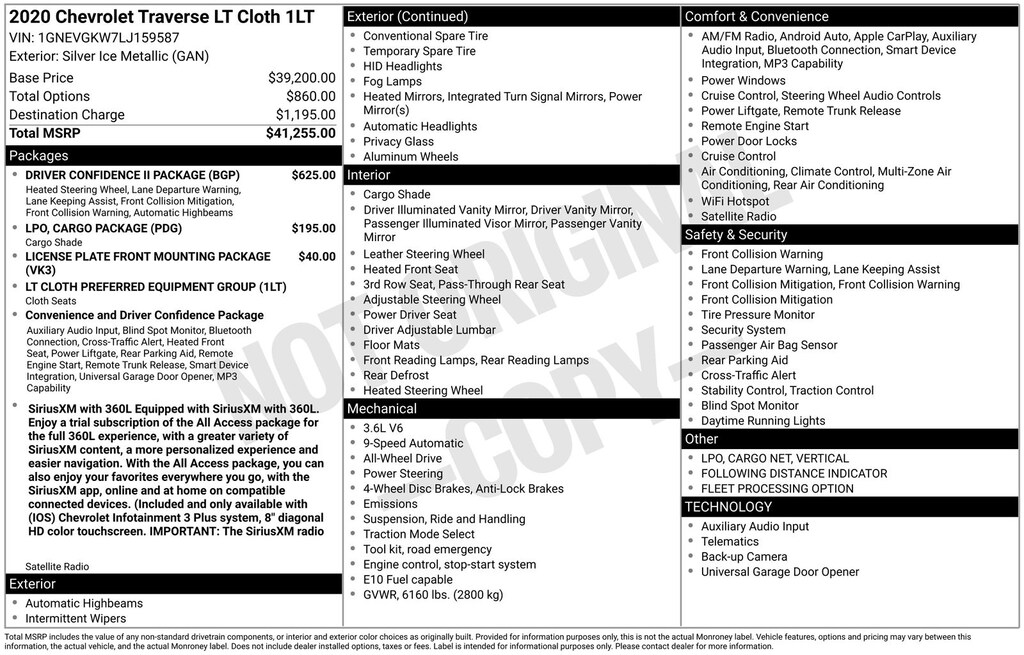 Traverse LT 1LT, AWD, *ADAPTIVE CRUISE*, *ALL WHEEL DRIVE*, *HEATED SEATS*, *HEATED STEERING WHEEL*, *LANE DEPARTURE WARNING*, *LOCAL TRADE*, *REARVIEW CAMERA*, Automatic Emergency Braking, Automatic Heated Steering Wheel, Cargo Package (LPO), Driver Confidence II Package, Following Distance Indicator, Forward Collision Alert, Front Pedestrian Braking, IntelliBeam Auto High Beam Control Headlamps, Lane Keep Assist w/Lane Departure Warning, Preferred Equipment Group 1LT, Retractable Cargo Shade, Vertical Cargo Net (LPO). Silver Ice Metallic 2020 Chevrolet Traverse LT 1LT AWD 9-Speed Automatic 3.6L V6 SIDI VVT