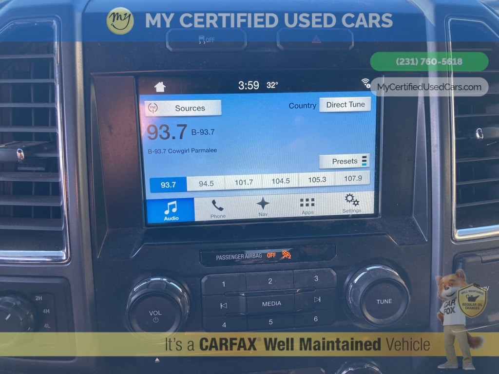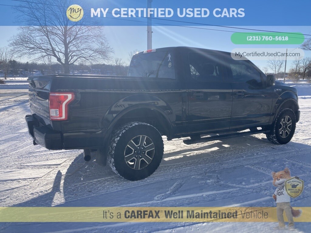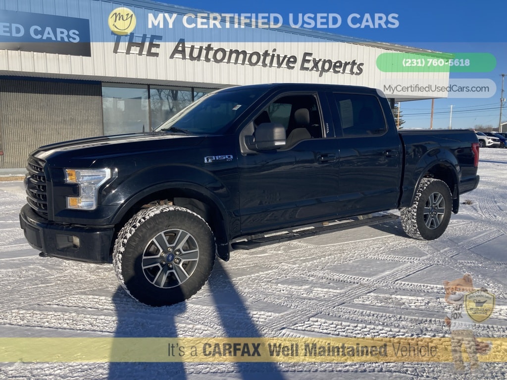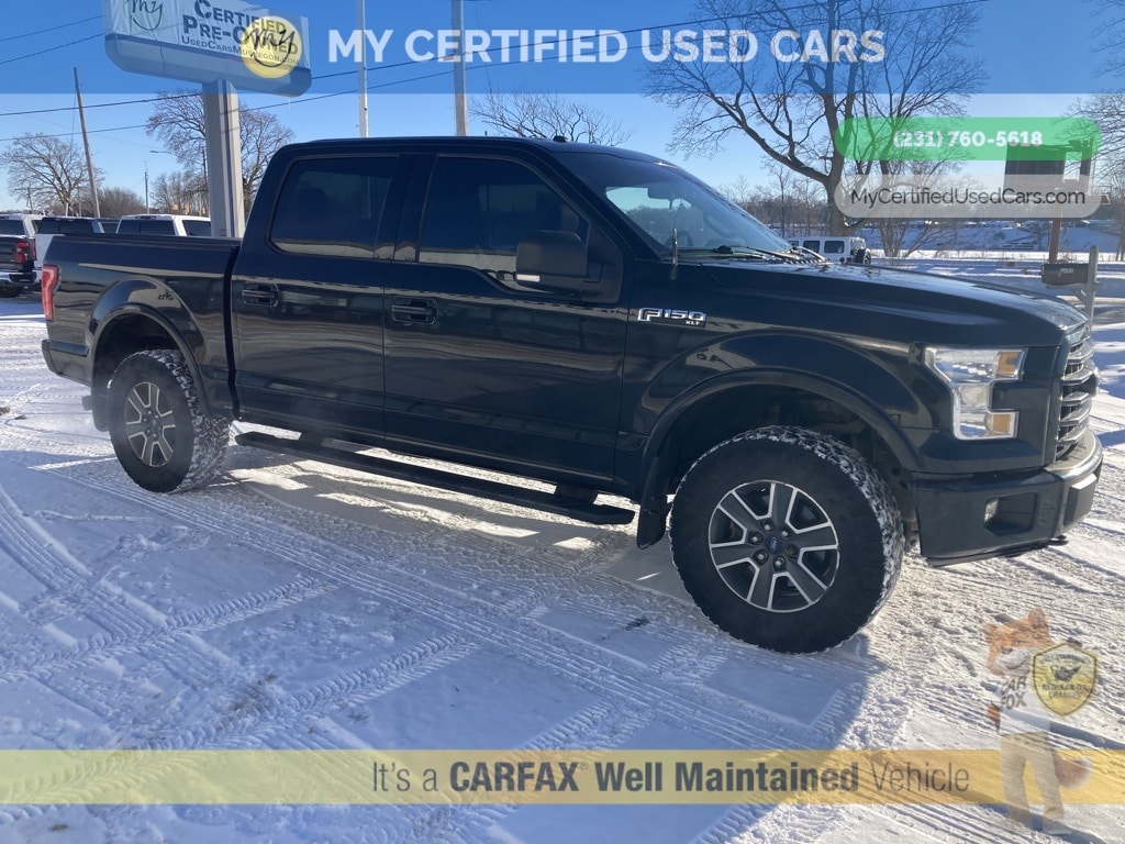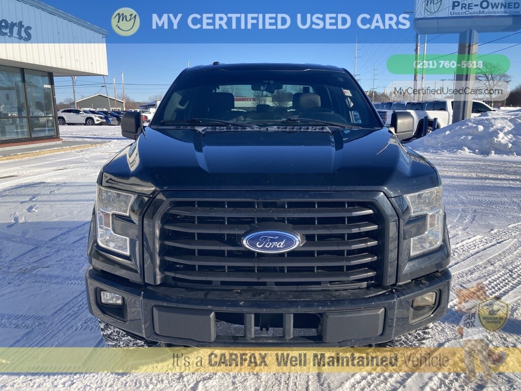 *LOCAL TRADE* ***2016 FORD F-150 XLT 4WD*** *SUPER BUY* *REARVIEW CAMERA*, *REMOTE START*, XLT Sport Appearance Package*SUPER BUY*, 3.55 Axle Ratio, 4.2" Productivity Screen in Instrument Cluster, 8-Way Power Driver's Seat, ABS brakes, Accent-Color Step Bars, Alloy wheels, Auto-Dimming Rear-View Mirror, Auxiliary Transmission Oil Cooler, Black Billet Style Grille w/Body-Color Surround, Body-Color Door & Tailgate Handles, Body-Color Front & Rear Bumpers, Box Side Decal, Class IV Trailer Hitch Receiver, Cloth 40/20/40 Front Seat, Compass, Electronic Stability Control, Equipment Group 301A Mid, Fixed Backlight w/Privacy Glass, GVWR: 7,000 lbs Payload Package, Illuminated entry, Leather-Wrapped Steering Wheel, Low tire pressure warning, Power Glass Heated Sideview Mirrors, Power-Adjustable Pedals, Pro Trailer Backup Assist, Radio: Single-CD w/SiriusXM Satellite, Rear Under-Seat Storage, Rear View Camera w/Dynamic Hitch Assist, Rear Window Defroster, Remote keyless entry, Single-Tip Chrome Exhaust, SYNC Voice Recognition Communications, Traction control, Trailer Tow Package, Upgraded Front Stabilizer Bar, Wheels: 18" 6-Spoke Machined-Aluminum, XLT Sport Appearance Package. MY Certified Used Cars of Muskegon is your #1 choice in Michigan to get the BEST PRICE on used vehicles and BEST value for your trade. The MY Certified Used Cars team is ready to provide you with a world-class experience, ensuring that you find the perfect vehicle that fits all your needs. Every vehicle has been through a full safety inspection completed by certified technicians and fully detailed. We sell many makes and models, Pre-Owned Vehicles with years from 2025-2024-2023-2022-2021-2020-2019-2018-2017-2016-2015-2014-2013-2012-2011-2010-2009-2008-2007 and all makes Audi, BMW, Chevrolet, Toyota, Volkswagen, Kia, Hyundai, Mercedes, Dodge, Chrysler, Jeep, Ram, Lincoln, Honda, Subaru, and many models like Bronco, Bronco Sport, Edge, Escapes, Expedition, Explorer, Fusions, Focus, Flex, F-150 Series, F-250, F-350, Super Duty Diesel Trucks, Maverick, Mustang MACH-E, Mustang, Ranger, Transit, Wrangler, Grand Cherokee, Grand Cherokee L, Wagoneer, Gladiator, Grand Caravan, RAM, RAM HEMI, and more. Take advantage of our VIP experience by calling 231-760-5618 to schedule a test drive. Read our customer reviews at www.mycertifiedusedcars.com/testimonials or view our entire selection of preowned vehicles at www.mycertifiedusedcars.com, or stop by today, located at 3692 Airline Rd. Muskegon, MI 49444. Black 2016 Ford F-150 XLT 4WD 6-Speed Automatic Electronic 5.0L V8 FFV Clean CARFAX.