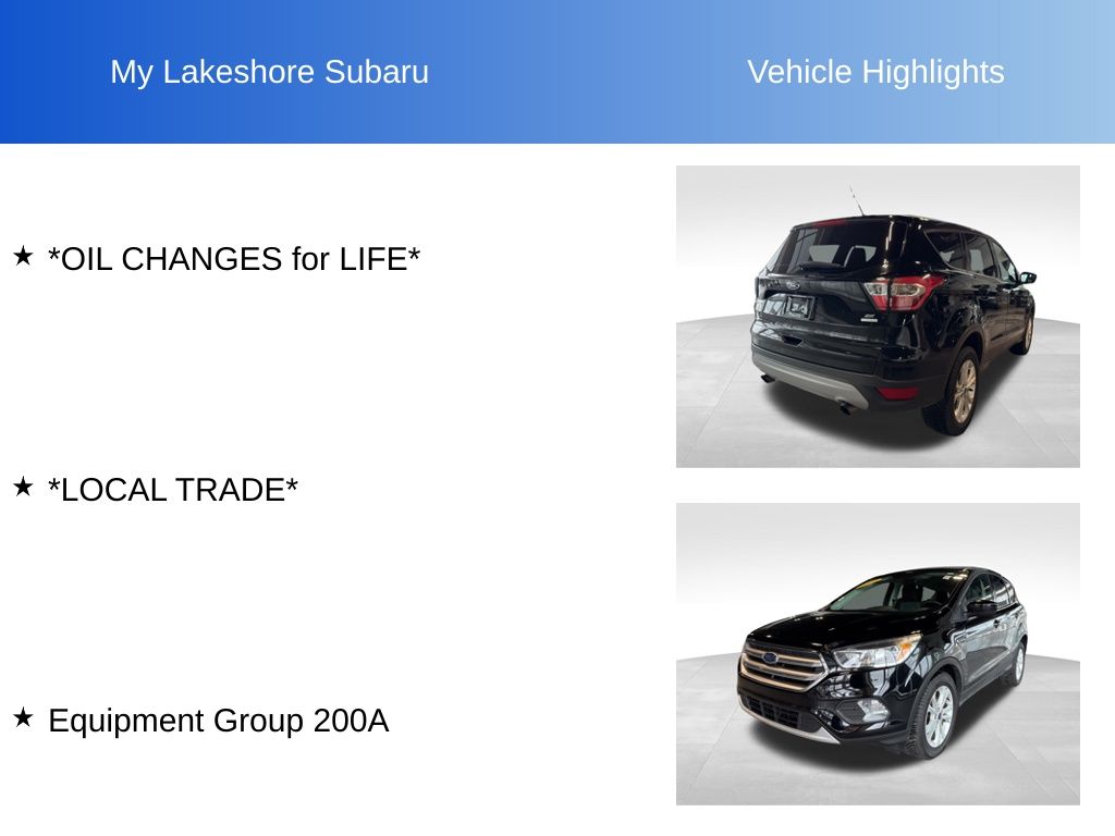 Escape SE, FWD, Shadow Black, *LOCAL TRADE*, *OIL CHANGES for LIFE*, Equipment Group 200A. Shadow Black 2017 Ford Escape SE FWD 6-Speed Automatic 1.5L EcoBoost