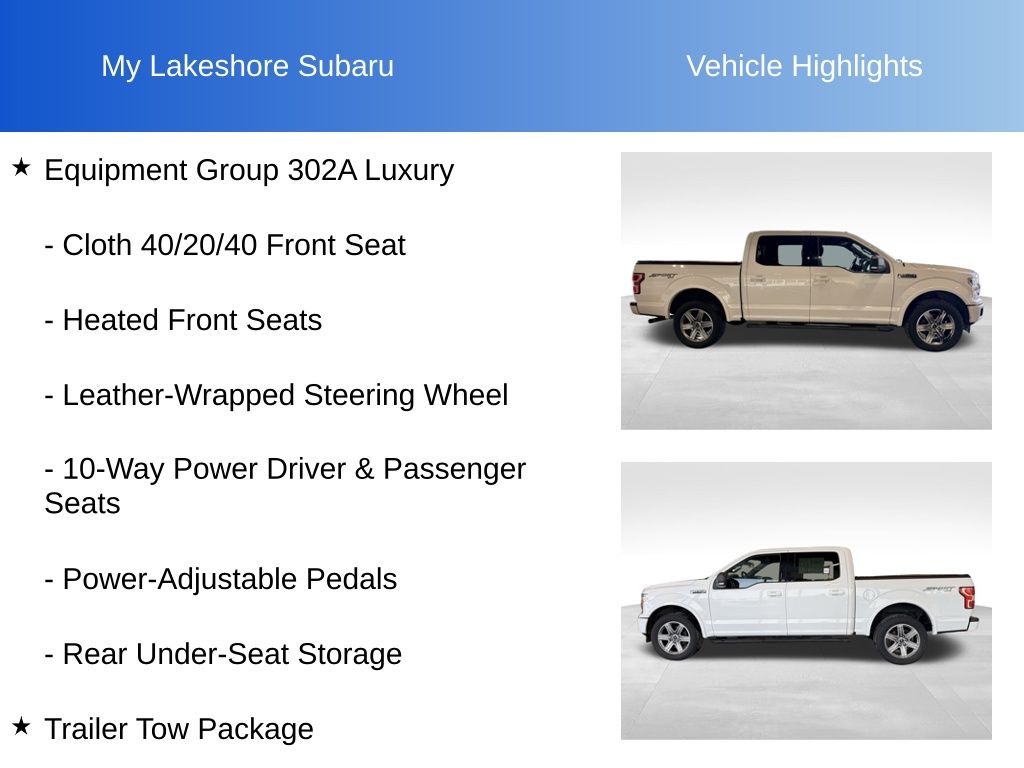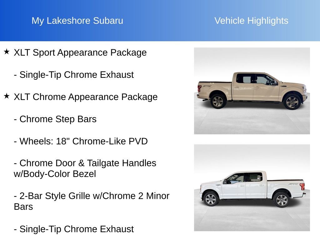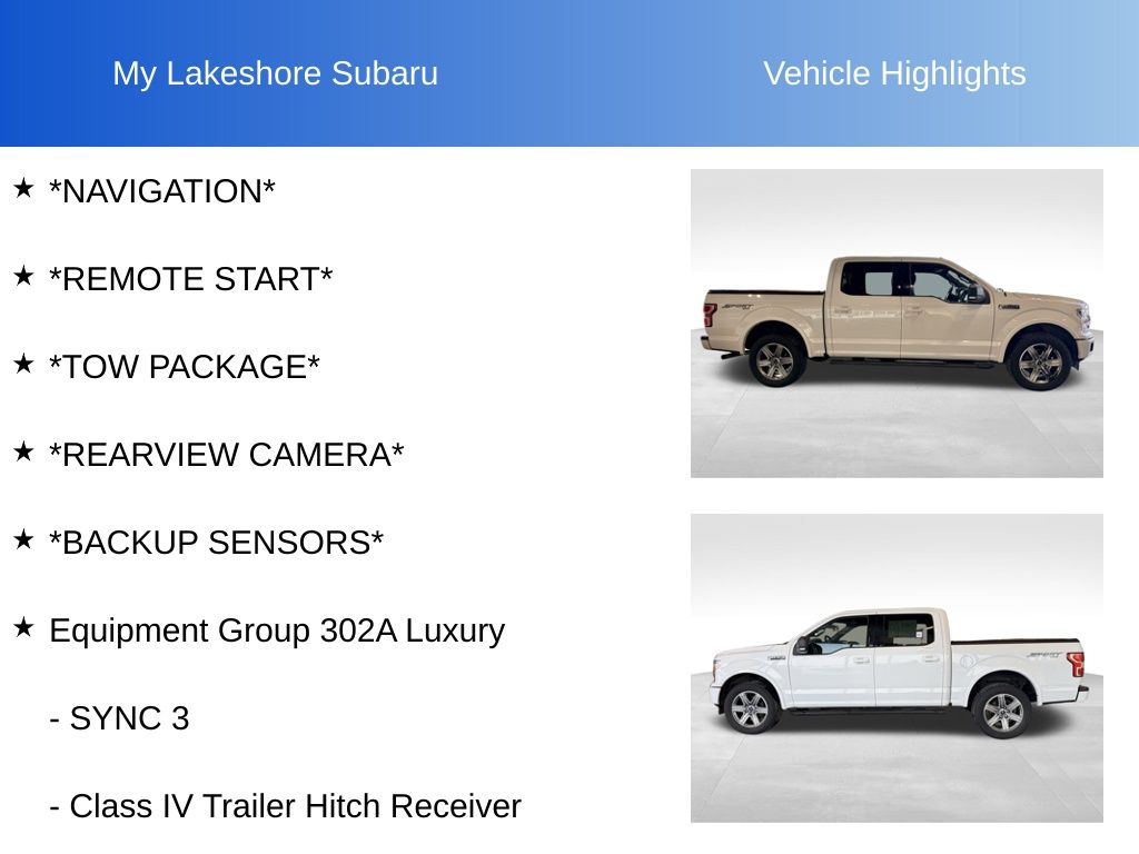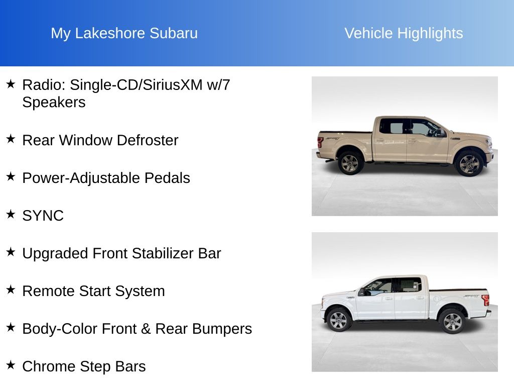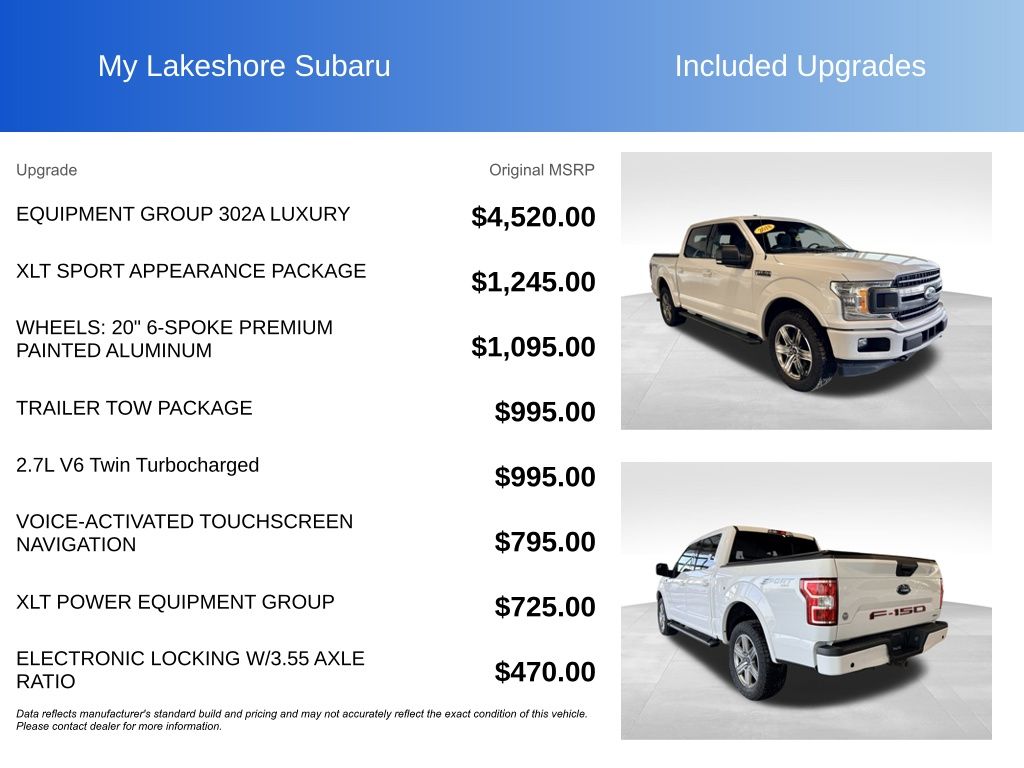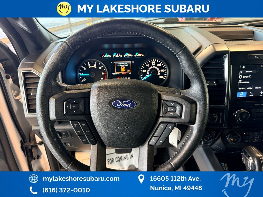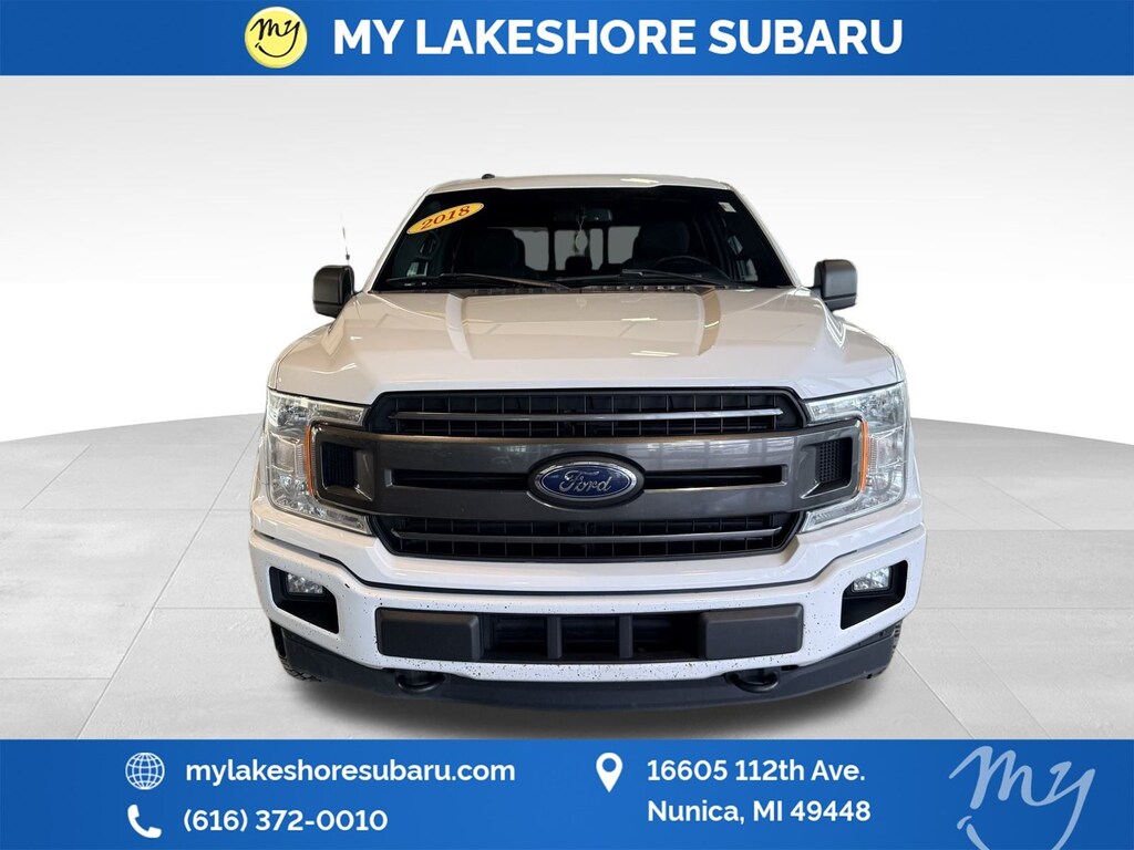F-150 XLT, 4WD, Oxford White, *BACKUP SENSORS*, *NAVIGATION*, *REARVIEW CAMERA*, *REMOTE START*, *TOW PACKAGE*, 10-Way Power Driver & Passenger Seats, 2-Bar Style Grille w/2 Minor Bars Painted Dark, 2-Bar Style Grille w/Chrome 2 Minor Bars, 4.2" Productivity Screen in Instrument Cluster, Accent-Color Step Bars, Auto-Dimming Rear-View Mirror, Body-Color Door & Tailgate Handles, Body-Color Front & Rear Bumpers, Box Side Decals, Chrome Door & Tailgate Handles w/Body-Color Bezel, Chrome Step Bars, Class IV Trailer Hitch Receiver, Cloth 40/20/40 Front Seat, Equipment Group 302A Luxury, Fixed Backlight w/Privacy Glass, GVWR: 6,600 lbs Payload Package, Heated Front Seats, Leather-Wrapped Steering Wheel, Power Glass Heated Sideview Mirrors, Power-Adjustable Pedals, Pro Trailer Backup Assist, Radio: Single-CD/SiriusXM w/7 Speakers, Rear Under-Seat Storage, Rear Window Defroster, Remote Start System, Reverse Sensing System, Single-Tip Chrome Exhaust, SYNC, SYNC 3, Trailer Tow Package, Upgraded Front Stabilizer Bar, Wheels: 18" 6-Spoke Machined-Aluminum, Wheels: 18" Chrome-Like PVD, XLT Chrome Appearance Package, XLT Sport Appearance Package. Oxford White 2018 Ford F-150 XLT 4WD 10-Speed Automatic 2.7L V6 EcoBoost