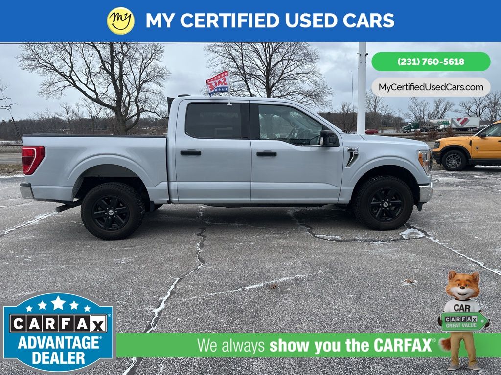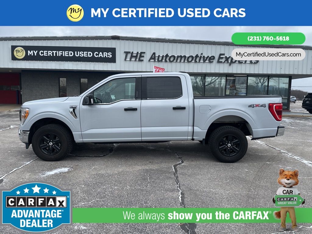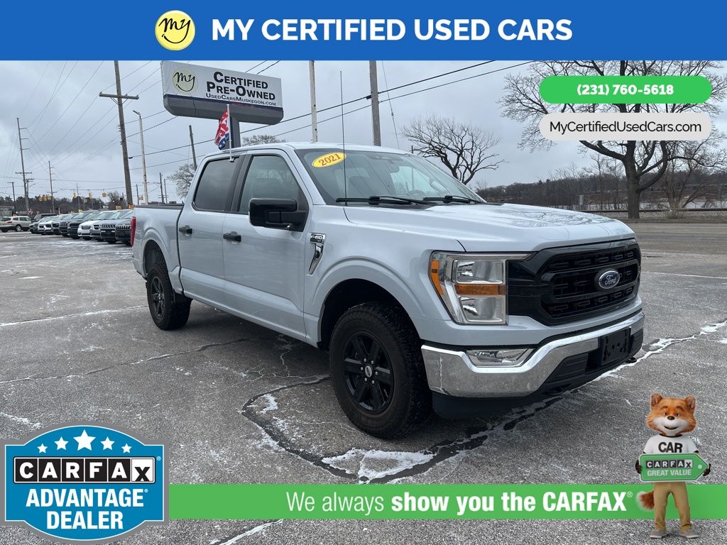 *FULLY SERVICED* ***2021 FORD F-150 XLT 4WD***, ***3.5L ECOBOOST*** *NEW TIRES* *VERY CLEAN* , *BACKUP SENSORS*, *LANE DEPARTURE WARNING*, *REARVIEW CAMERA*, *ADAPTIVE CRUISE*, *APPLE CARPLAY & ANDROID AUTO* 3.31 Axle Ratio, GVWR: 7,050 lbs Payload Package 8-Way Power Driver's Seat w/Power Lumbar, 8" Productivity Screen in Instrument Cluster, Auto-Dimming Rear-View Mirror, Class IV Trailer Hitch Receiver, Dual Zone Automatic Temperature Control, Equipment Group 301A Mid, Integrated Trailer Brake Controller, Leather-Wrapped Steering Wheel, Power Glass Heated Sideview Mirrors, Pro Trailer Backup Assist, Radio: AM/FM SiriusXM w/360L, Rear Under-Seat Storage, SecuriCode Drivers Side Keyless-Entry Keypad, SYNC 4 w/Enhanced Voice Recognition, Trailer Tow Package. MY Certified Used Cars of Muskegon is your #1 choice in Michigan to get the BEST PRICE on used vehicles and BEST value for your trade. The MY Certified Used Cars team is ready to provide you with a world-class experience, ensuring that you find the perfect vehicle that fits all your needs. Every vehicle has been through a full safety inspection completed by certified technicians and fully detailed. We sell many makes and models, Pre-Owned Vehicles with years from 2025-2024-2023-2022-2021-2020-2019-2018-2017-2016-2015-2014-2013-2012-2011-2010-2009-2008-2007 and all makes Audi, BMW, Chevrolet, Toyota, Volkswagen, Kia, Hyundai, Mercedes, Dodge, Chrysler, Jeep, Ram, Lincoln, Honda, Subaru, and many models like Bronco, Bronco Sport, Edge, Escapes, Expedition, Explorer, Fusions, Focus, Flex, F-150 Series, F-250, F-350, Super Duty Diesel Trucks, Maverick, Mustang MACH-E, Mustang, Ranger, Transit, Wrangler, Grand Cherokee, Grand Cherokee L, Wagoneer, Gladiator, Grand Caravan, RAM, RAM HEMI, and more. Take advantage of our VIP experience by calling 231-760-5618 to schedule a test drive. Read our customer reviews at www.mycertifiedusedcars.com/testimonials or view our entire selection of preowned vehicles at www.mycertifiedusedcars.com, or stop by today, located at 3692 Airline Rd. Muskegon, MI 49444. White Metallic 2021 Ford F-150 XLT 4WD 10-Speed Automatic 3.5L V6 EcoBoost