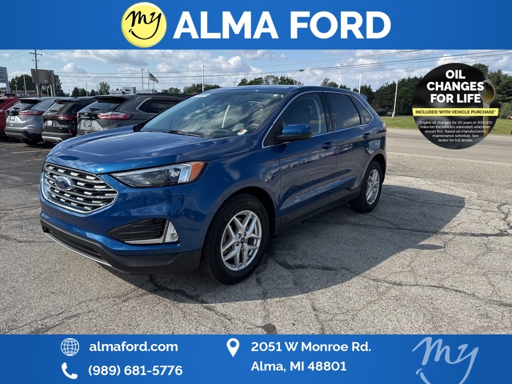 Edge SEL, EcoBoost 2.0L I4 GTDi DOHC Turbocharged VCT, AWD, Blue Metallic, *ACCIDENT FREE*, *ANDROID AUTO*, *APPLE CARPLAY*, *BLIND SPOT MONITORING SYSTEM*, *BLUETOOTH*, *CLEAN CARFAX 1-OWNER*, *FULLY SERVICED*, *HEATED SEATS*, *HEATED STEERING WHEEL*, *JUST ARRIVED*, *LANE DEPARTURE WARNING*, *OIL CHANGES for LIFE*, *REMOTE START*, *SUPER BUY*, *VERY CLEAN*, 110V/150W AC Power Outlet, Convenience Package, Equipment Group 201A, Fog Lamps w/Chrome Bezel, Perimeter Alarm, Power Liftgate, Remote Start System, SecuriCode Keyless Entry Keypad, Universal Garage Door Opener (UGDO), Wheels: 18" Sparkle Silver-Painted Aluminum, Wireless Charging Pad. 2022 Ford Edge SEL Blue Metallic YOUR BEST PRICE on ANY NEW FORD is at Alma Ford. Get the MOST MONEY for your TRADE and BEST PRICE GUARANTEE on ANY NEW FORD! Alma Ford is your #1 choice in Michigan to get the BEST PRICE on any NEW Ford and HOME of the OIL Changes for LIFE*. The Alma Ford team is ready to provide you with a world-class experience, ensuring that you find the perfect vehicle that fits all your needs. Every vehicle has been through a 172 point safety inspection completed by a certified technicians and fully detailed. We sell many makes and models, Pre-Owned Ford Vehicles 2025-2024-2023-2022-2021-2020-2019-2018-2017-2016-2015-2014-2013-2012-2011-2010 Ford Bronco, Bronco Sport, Edge, Escapes, Expedition, Explorer, Fusions, Focus, Flex, F-150 Series, F-250, F-350, Super Duty Diesel Trucks, Maverick, Mustang MACH-E, Mustang, Ranger, Transit, and more For sale. Take advantage of our VIP experience by calling 989-699-5260 to schedule a test drive. Read our customer reviews at www.almaford.com/customer-testimonials or view our entire selection of new and preowned vehicles at www.almaford.com, or stop by today, located at 2051 W Monroe, Alma, MI 48801. The title is in transit and this vehicle is not available for sale. 2022 Ford Edge SEL AWD 8-Speed Automatic EcoBoost 2.0L I4 GTDi DOHC Turbocharged VCT