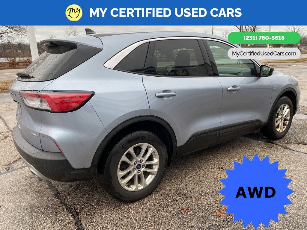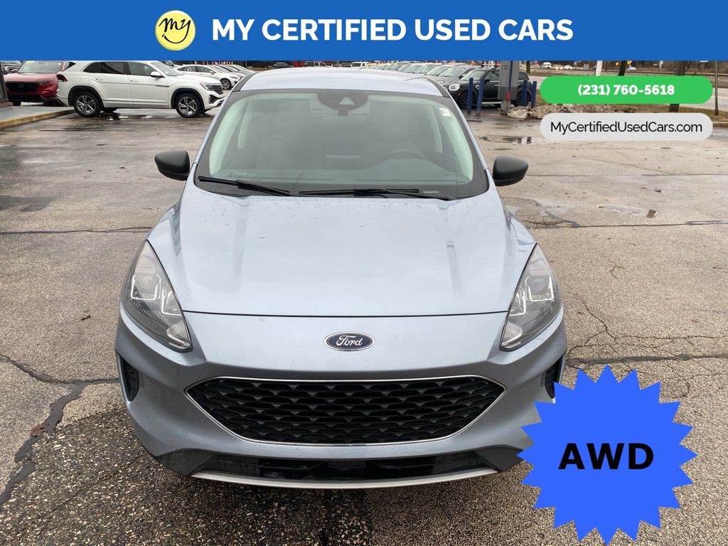 *SUPER BUY* ***2022 FORD ESCAPE SE AWD*** *VERY CLEAN* *REMOTE START* *HEATED SEATS*, *HEATED STEERING WHEEL* ***ADVANCETRAC WITH RSC***, **FORD CO-PILOT 360**, *BLIND SPOT MONITORING SYSTEM*, *HANDSFREE BLUETOOTH*, *REARVIEW CAMERA*, *ADAPTIVE CRUISE*, *APPLE CARPLAY & ANDROID AUTO* Cold Weather Package, Electronic Automatic Temperature Control (EATC), Equipment Group 200A, Heated & Premium Wrapped Steering Wheel, Heated Front Row Seats, Heated Sideview Mirrors, Remote Start System w/86C. MY Certified Used Cars of Muskegon is your #1 choice in Michigan to get the BEST PRICE on used vehicles and BEST value for your trade. The MY Certified Used Cars team is ready to provide you with a world-class experience, ensuring that you find the perfect vehicle that fits all your needs. Every vehicle has been through a full safety inspection completed by certified technicians and fully detailed. We sell many makes and models, Pre-Owned Vehicles with years from 2025-2024-2023-2022-2021-2020-2019-2018-2017-2016-2015-2014-2013-2012-2011-2010-2009-2008-2007 and all makes Audi, BMW, Chevrolet, Toyota, Volkswagen, Kia, Hyundai, Mercedes, Dodge, Chrysler, Jeep, Ram, Lincoln, Honda, Subaru, and many models like Bronco, Bronco Sport, Edge, Escapes, Expedition, Explorer, Fusions, Focus, Flex, F-150 Series, F-250, F-350, Super Duty Diesel Trucks, Maverick, Mustang MACH-E, Mustang, Ranger, Transit, Wrangler, Grand Cherokee, Grand Cherokee L, Wagoneer, Gladiator, Grand Caravan, RAM, RAM HEMI, and more. Take advantage of our VIP experience by calling 231-760-5618 to schedule a test drive. Read our customer reviews at www.mycertifiedusedcars.com/testimonials or view our entire selection of preowned vehicles at www.mycertifiedusedcars.com, or stop by today, located at 3692 Airline Rd. Muskegon, MI 49444. New Price! CARFAX One-Owner. Iced Blue Silver Metallic 2022 Ford Escape SE AWD 8-Speed Automatic 1.5L EcoBoost