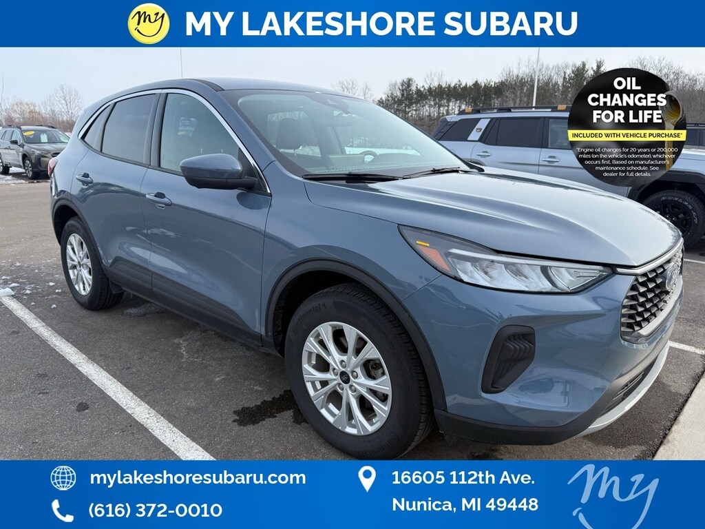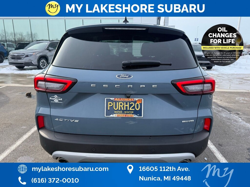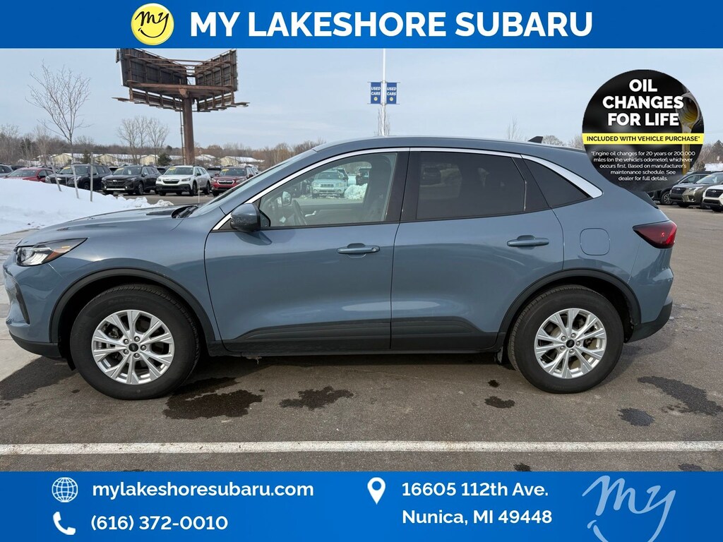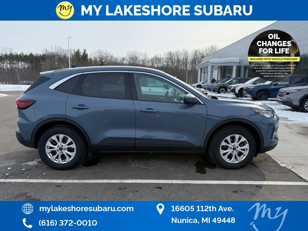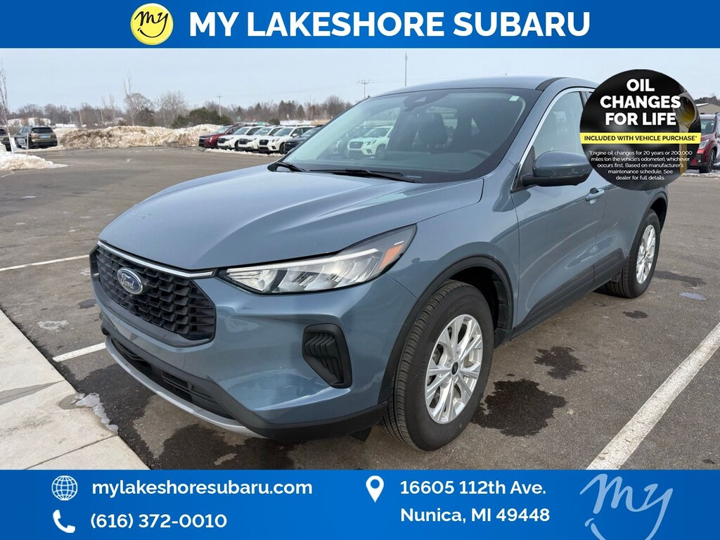 Escape Active, AWD, Vapor Blue Metallic, *ALL WHEEL DRIVE*, *APPLE CARPLAY & ANDROID AUTO*, *BACKUP CAMERA*, *BACKUP SENSORS*, *BLIND SPOT MONITORING*, *HEATED SEATS*, *HEATED STEERING WHEEL*, *LANE DEPARTURE WARNING*, *LOCAL TRADE*, *OIL CHANGES for LIFE*, *PREMIUM SOUND*, 10-Way Power Driver's Seat, 12.3" Productivity Screen in Instrument Cluster, 360-Degree Camera w/Split View, 6-Way Power Passenger Seat, Adaptive Cruise Control w/Stop-and-Go, Body Color Mirrors, Cold Weather Package, Connected Navigation, Equipment Group 200A, Ford Co-Pilot360 Assist 2.0, HD Radio, Heated Front Row Seats, Heated Sideview Mirrors, Heated Steering Wheel, Intersection Assist, Memory Package, Radio: B&O Sound System by Bang & Olufsen, Rear Parking Sensor, Remote Starter System, Reverse Brake Assist, Speed Sign Recognition, SYNC 4 w/Enhanced Voice Recognition, Tech Pack #2, Wireless Charging Pad. Vapor Blue Metallic 2024 Ford Escape Active AWD 8-Speed Automatic 1.5L EcoBoost
