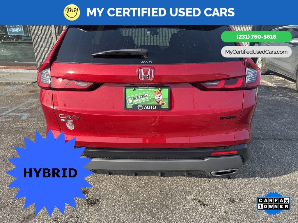 *SUPER BUY* ***2023 HONDA CR-V HYBRID SPORT AWD***, *VERY CLEAN* *FULLY SERVICED* *HEATED SEATS*, *HANDSFREE BLUETOOTH*, *LANE DEPARTURE WARNING*, *MOONROOF*, *NAVIGATION SYSTEM*, *REARVIEW CAMERA* *ADAPTIVE CRUISE*, *APPLE CARPLAY & ANDROID AUTO*, Adaptive Cruise Control: Adaptive Cruise Control (ACC) with Low-Speed Follow, Auto High-beam Headlights, Blind Spot Information (BSI) System warning, Brake assist, Electronic Stability Control, Exterior Parking Camera Rear, Front dual zone A/C, Heated Front Bucket Seats, Power moonroof, Wheels: 18" Berlina Black Alloy. MY Certified Used Cars of Muskegon is your #1 choice in Michigan to get the BEST PRICE on used vehicles and BEST value for your trade. The MY Certified Used Cars team is ready to provide you with a world-class experience, ensuring that you find the perfect vehicle that fits all your needs. Every vehicle has been through a full safety inspection completed by certified technicians and fully detailed. We sell many makes and models, Pre-Owned Vehicles with years from 2025-2024-2023-2022-2021-2020-2019-2018-2017-2016-2015-2014-2013-2012-2011-2010-2009-2008-2007 and all makes Audi, BMW, Chevrolet, Toyota, Volkswagen, Kia, Hyundai, Mercedes, Dodge, Chrysler, Jeep, Ram, Lincoln, Honda, Subaru, and many models like Bronco, Bronco Sport, Edge, Escapes, Expedition, Explorer, Fusions, Focus, Flex, F-150 Series, F-250, F-350, Super Duty Diesel Trucks, Maverick, Mustang MACH-E, Mustang, Ranger, Transit, Wrangler, Grand Cherokee, Grand Cherokee L, Wagoneer, Gladiator, Grand Caravan, RAM, RAM HEMI, and more. Take advantage of our VIP experience by calling 231-760-5618 to schedule a test drive. Read our customer reviews at www.mycertifiedusedcars.com/testimonials or view our entire selection of preowned vehicles at www.mycertifiedusedcars.com, or stop by today, located at 3692 Airline Rd. Muskegon, MI 49444. New Price! CARFAX One-Owner. Red 2023 Honda CR-V Hybrid Sport AWD eCVT 2.0L I4 DOHC 16V