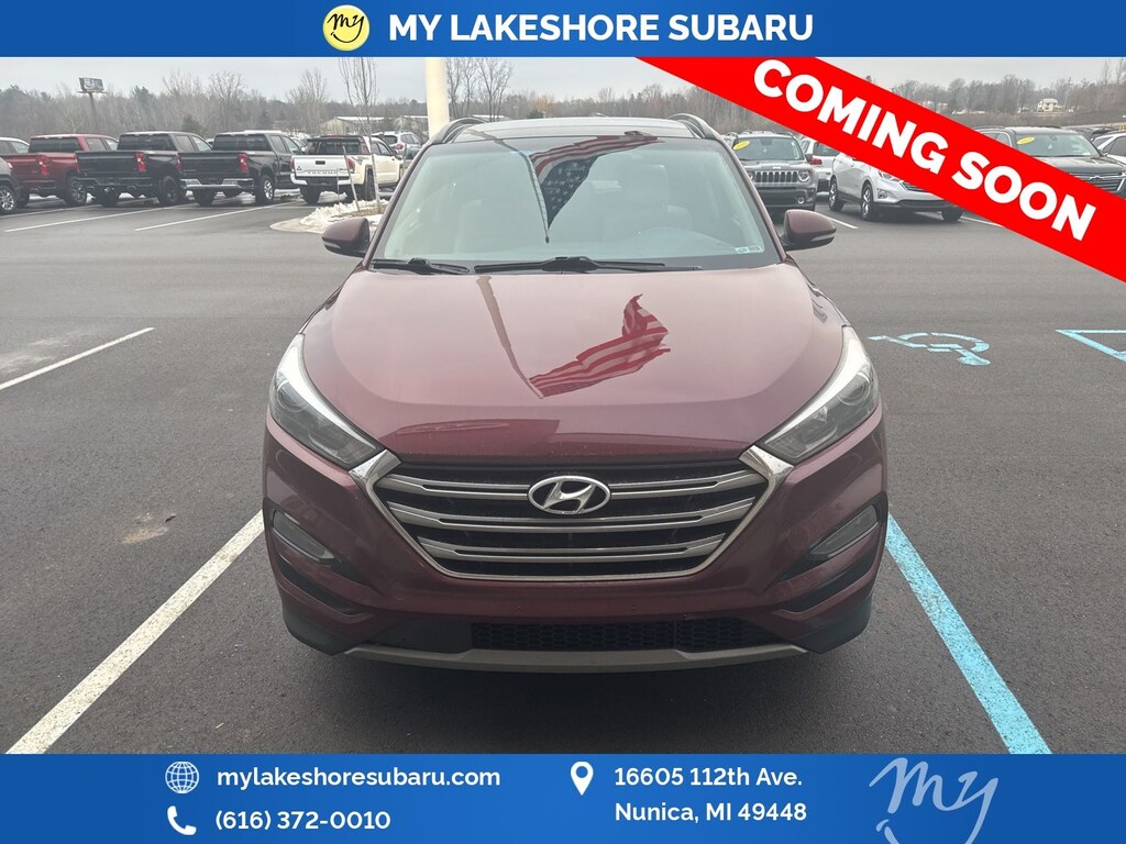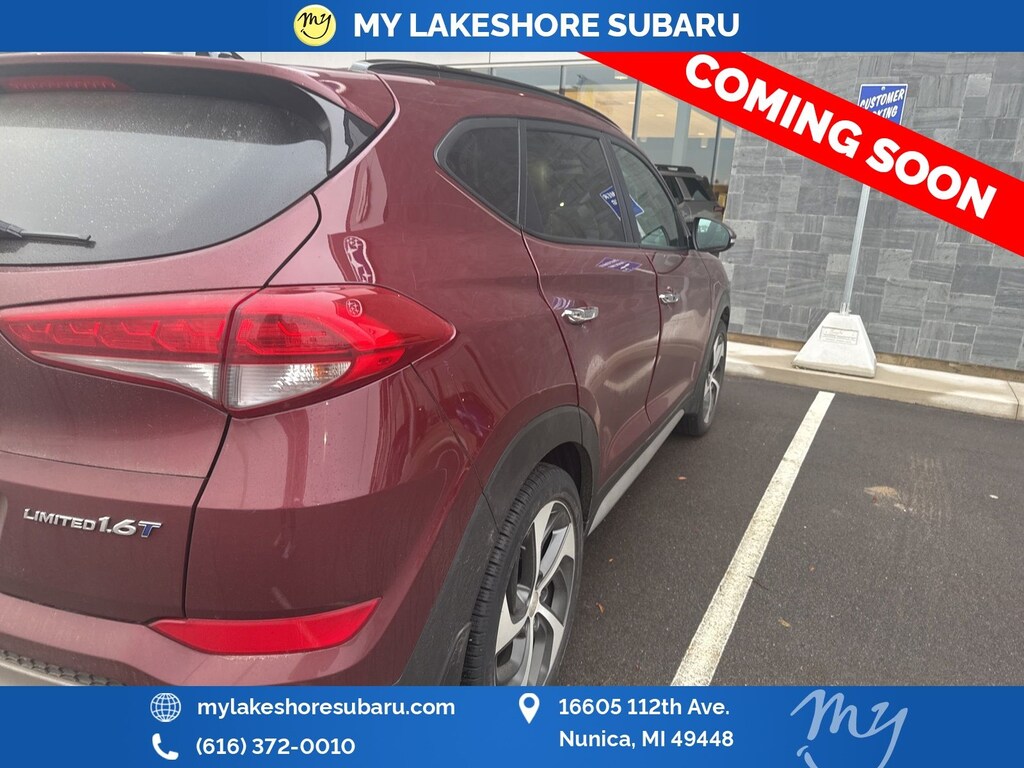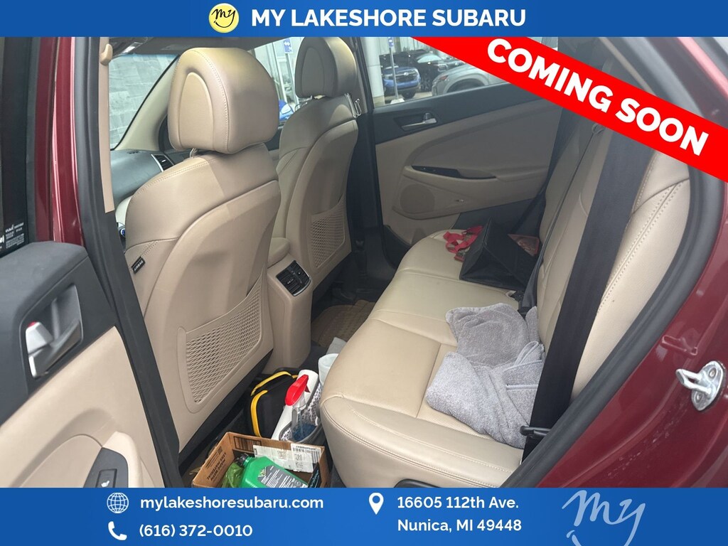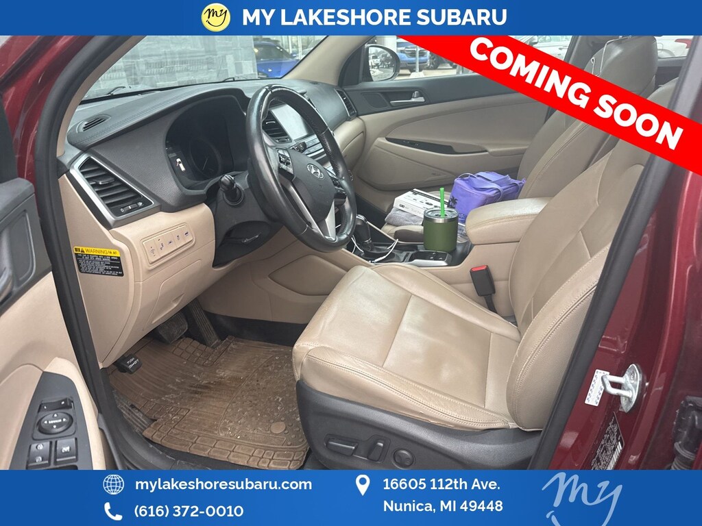 Tucson Limited, Ruby Wine, *APPLE CARPLAY & ANDROID AUTO*, *HEATED REAR Seats*, *LANE DEPARTURE WARNING*, *LEATHER HEATED POWER SEATS*, *LOCAL TRADE*, *MOONROOF*. Ruby Wine 2018 Hyundai Tucson Limited FWD 7-Speed Automatic 1.6L I4 DGI Turbocharged DOHC 16V ULEV II 175hp