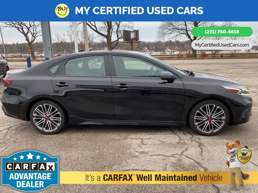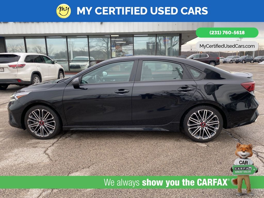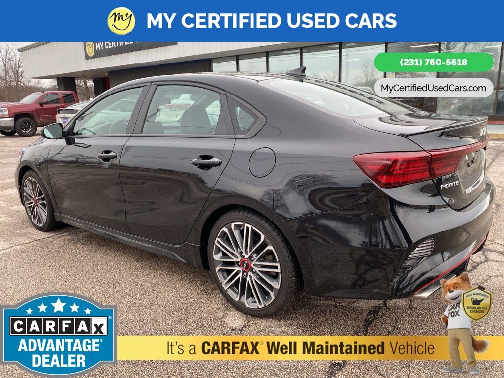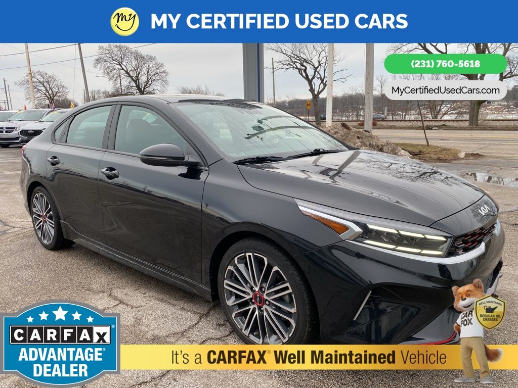 *FULLY SERVICED* ***2022 KIA FORTE GT*** *SUPER BUY*, *VERY CLEAN* **REMOTE START** *LEATHER HEATED/COOLED POWER SEATS* *BLIND SPOT MONITORING SYSTEM*, *LANE DEPARTURE WARNING*, **REAR CROSS-TRAFFIC COLLISION-AVOIDANCE**, *NAVIGATION SYSTEM*, *PREMIUM SOUND* *SUNROOF* *APPLE CARPLAY & ANDROID AUTO*, *REARVIEW CAMERA*, 10-Way Power Driver's Seat, Electronic Parking Brake (EPB) w/Auto Hold, Forward Collision Avoidance-Assist - Cyclist, Front dual zone A/C, GT2 Package, Heated & Ventilated Front Seats, Highway Driving Assist (HDA), Navigation System, Navigation-Based Smart Cruise Control (NSCC), Overhead LED Front & Rear Reading Lamps, Parking Distance Warning-Reverse, Power Sunroof, Radio: AM/FM/MP3 harman/kardon Premium Audio System, Smart Cruise Control, SynTex Seat Trim, Wheels: 18" Machine Finish Alloy. MY Certified Used Cars of Muskegon is your #1 choice in Michigan to get the BEST PRICE on used vehicles and BEST value for your trade. The MY Certified Used Cars team is ready to provide you with a world-class experience, ensuring that you find the perfect vehicle that fits all your needs. Every vehicle has been through a full safety inspection completed by certified technicians and fully detailed. We sell many makes and models, Pre-Owned Vehicles with years from 2025-2024-2023-2022-2021-2020-2019-2018-2017-2016-2015-2014-2013-2012-2011-2010-2009-2008-2007 and all makes Audi, BMW, Chevrolet, Toyota, Volkswagen, Kia, Hyundai, Mercedes, Dodge, Chrysler, Jeep, Ram, Lincoln, Honda, Subaru, and many models like Bronco, Bronco Sport, Edge, Escapes, Expedition, Explorer, Fusions, Focus, Flex, F-150 Series, F-250, F-350, Super Duty Diesel Trucks, Maverick, Mustang MACH-E, Mustang, Ranger, Transit, Wrangler, Grand Cherokee, Grand Cherokee L, Wagoneer, Gladiator, Grand Caravan, RAM, RAM HEMI, and more. Take advantage of our VIP experience by calling 231-760-5618 to schedule a test drive. Read our customer reviews at www.mycertifiedusedcars.com/testimonials or view our entire selection of preowned vehicles at www.mycertifiedusedcars.com, or stop by today, located at 3692 Airline Rd. Muskegon, MI 49444. Aurora Black Pearl 2022 Kia Forte GT FWD 7-Speed Automatic 1.6L 4-Cylinder Clean CARFAX.