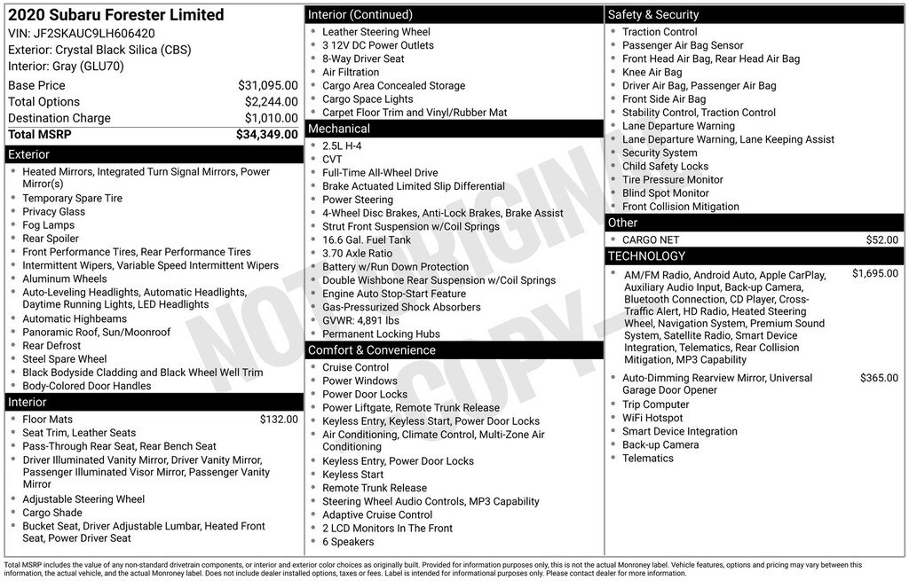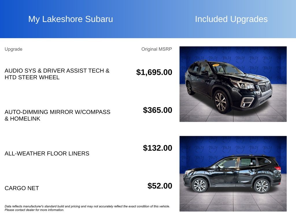 Forester Limited, Crystal Black Silica, *ALL WHEEL DRIVE*, *APPLE CARPLAY & ANDROID AUTO*, *BLIND SPOT MONITORING*, *EYESIGHT Driver Assist*, *HEATED STEERING WHEEL*, *LANE DEPARTURE WARNING*, *LEATHER HEATED POWER SEATS*, *LOCAL TRADE*, *PANORAMIC MOONROOF*, *PREMIUM SOUND*, Audio Sys & Driver Assist Tech & Htd Steer Wheel, harman kardon 576W Amp & Speaker System, Heated Steering Wheel, Radio: Subaru Starlink 8.0" Multimedia Nav System, Reverse Automatic Braking System (RAB). Crystal Black Silica 2020 Subaru Forester Limited AWD Lineartronic CVT 2.5L 4-Cylinder DOHC 16V VVT
