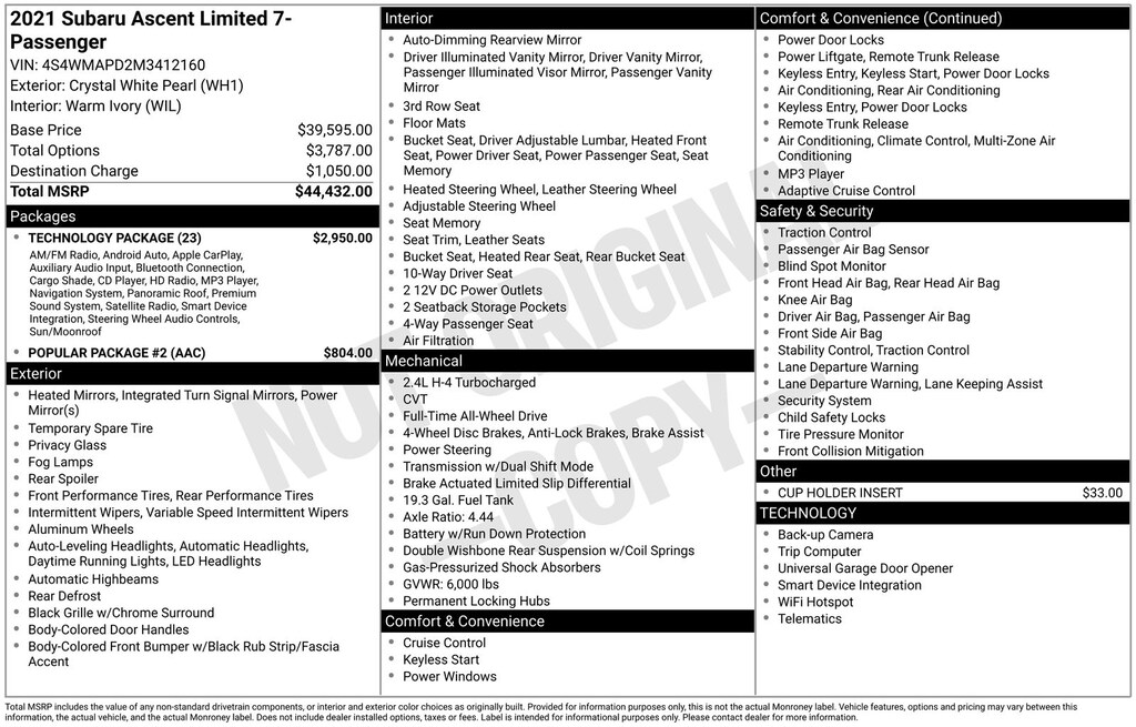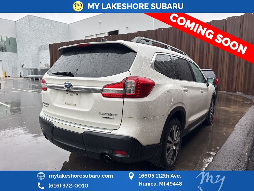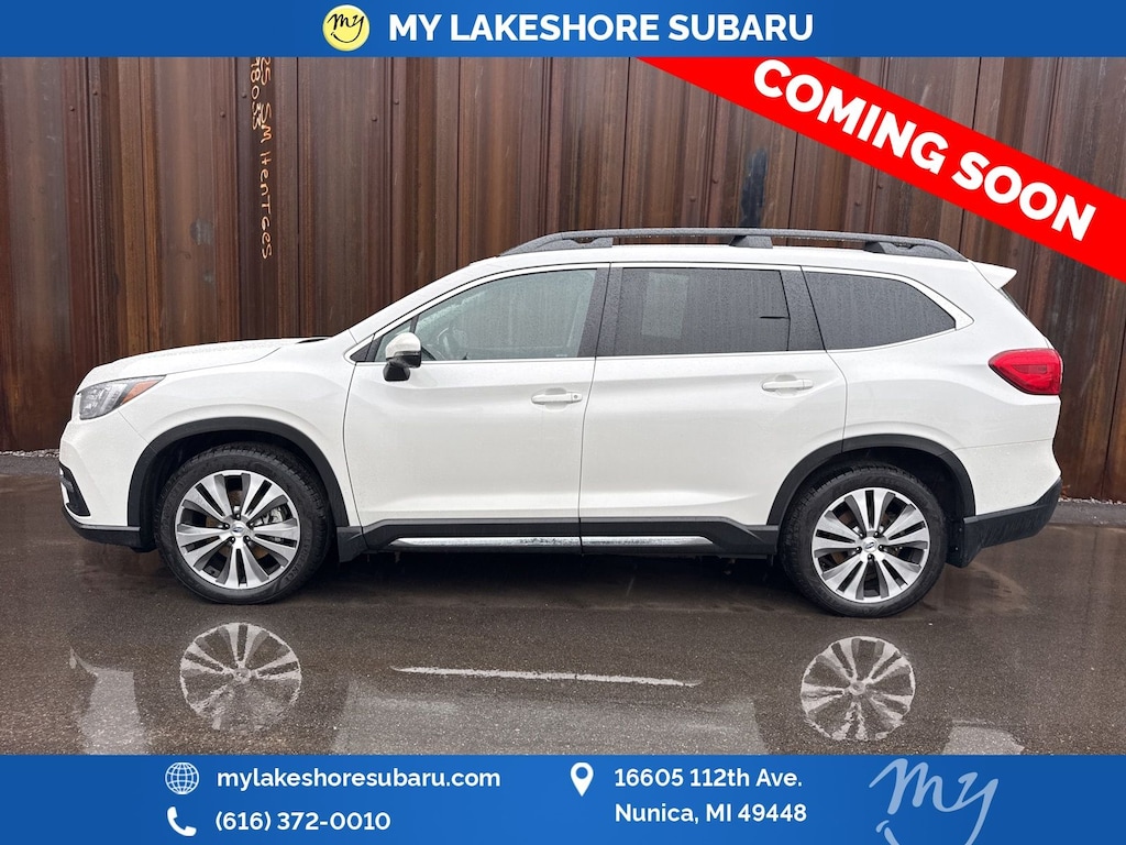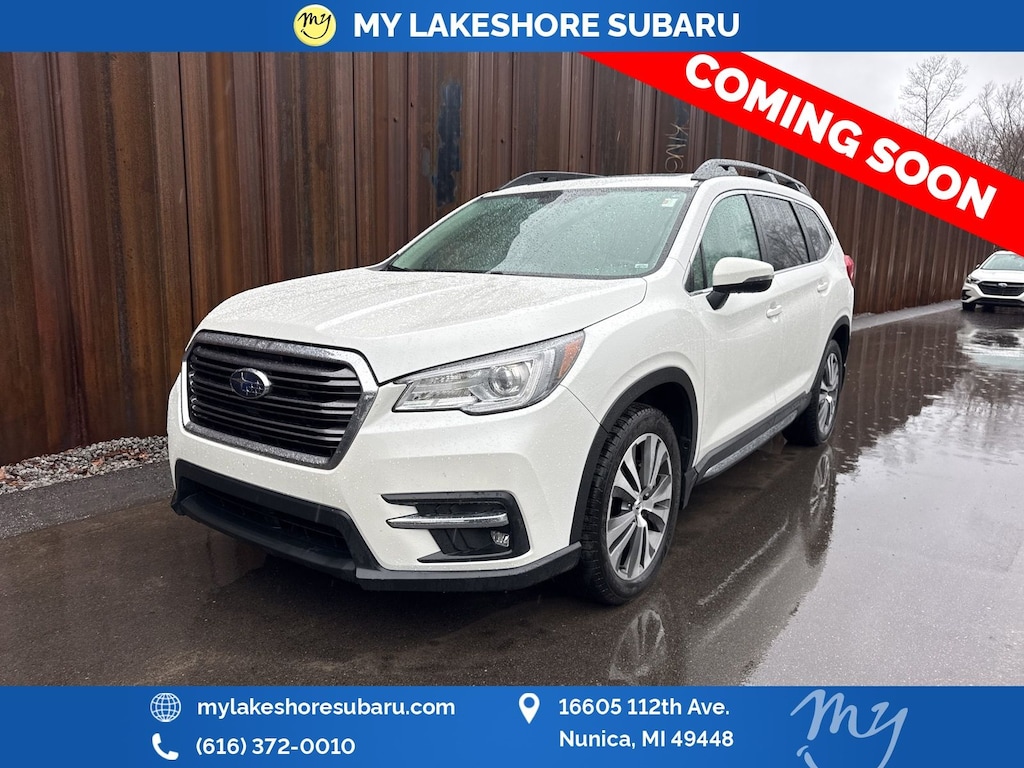 Ascent Limited, Crystal White Pearl, *ALL WHEEL DRIVE*, *APPLE CARPLAY & ANDROID AUTO*, *EYESIGHT Driver Assist*, *HEATED REAR Seats*, *HEATED STEERING WHEEL*, *LANE DEPARTURE WARNING*, *LEATHER HEATED POWER SEATS*, *LOCAL TRADE*, *OIL CHANGES for LIFE*, *PANORAMIC MOONROOF*, *PREMIUM SOUND*, Cargo Area Cover, Dual Glass Panoramic Power Moonroof, Radio: Subaru STARLINK 8.0" Multimedia Nav System, Technology Package. Crystal White Pearl 2021 Subaru Ascent Limited AWD Lineartronic CVT 2.4L 4-Cylinder DOHC 16V