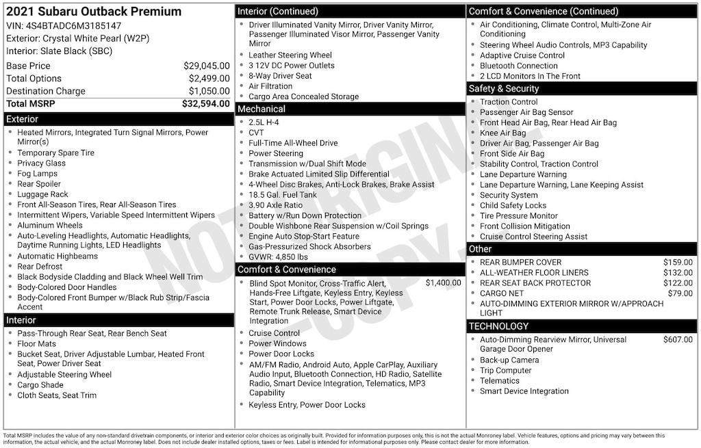Outback Premium, Crystal White Pearl, *ALL WHEEL DRIVE*, *APPLE CARPLAY & ANDROID AUTO*, *BLIND SPOT MONITORING*, *EYESIGHT Driver Assist*, *HEATED SEATS*, *LANE DEPARTURE WARNING*, *LOCAL TRADE*, *OIL CHANGES for LIFE*, Blind Spot Detection (BSD), BSD w/RCTA & Keyless Access & Push Button Start, Hands-Free Power Rear Gate, Keyless Access w/Push Button Start, Rear Cross Traffic Alert (RCTA). Crystal White Pearl 2021 Subaru Outback Premium AWD CVT Lineartronic 2.5L 4-Cylinder DOHC 16V