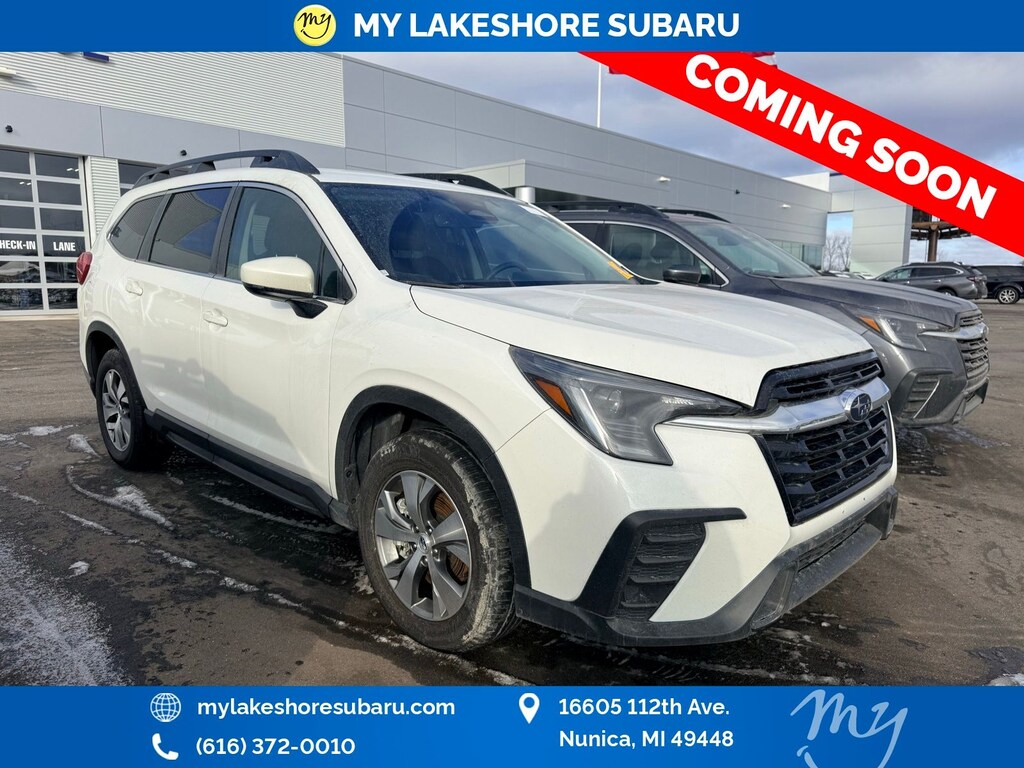 Ascent Premium, Crystal White Pearl, *ALL WHEEL DRIVE*, *APPLE CARPLAY & ANDROID AUTO*, *EYESIGHT Driver Assist*, *HEATED SEATS*, *LANE DEPARTURE WARNING*, *OIL CHANGES for LIFE*. Certified. Crystal White Pearl 2024 Subaru Ascent Premium AWD Lineartronic CVT 2.4L 4-Cylinder DOHC 16V