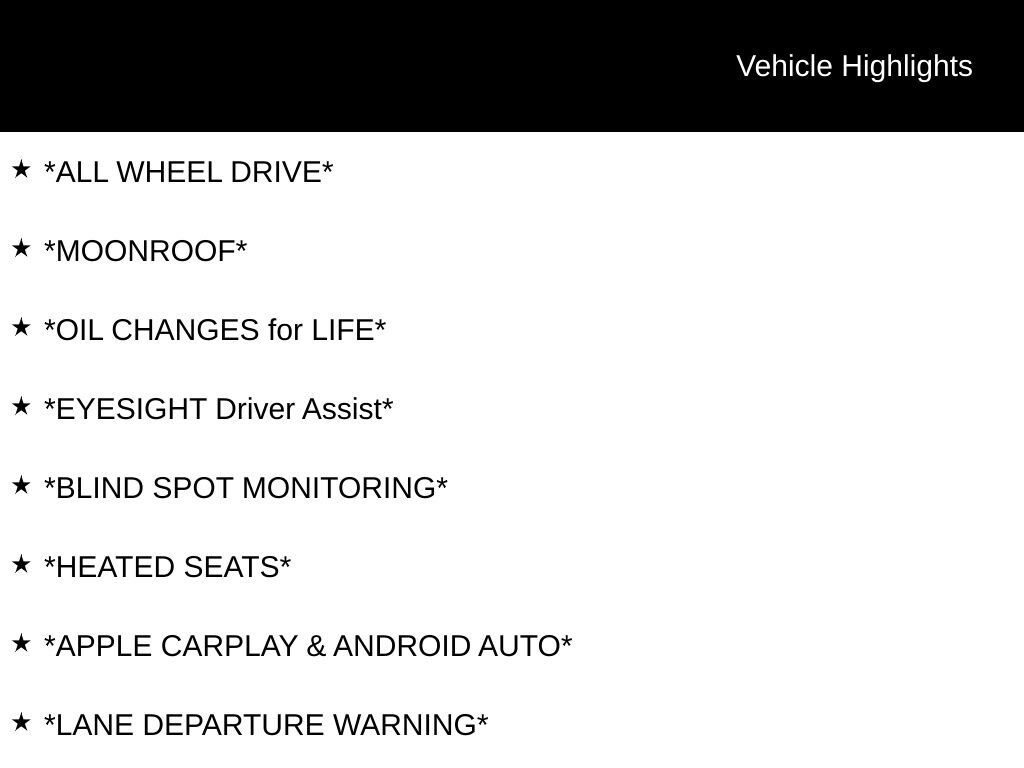 My Lakeshore Subaru is proud to service customer's saving you time & money on any Pre-owned vehicle! See dealer for complete details, dealer is not responsible for pricing errors, all prices, plus tax, title, plate, and $280 documentation fees. Serving Nunica and all of our surrounding cities like Norton Shores, Grandville, Greenville, Grand Rapids, Lansing, Kalamazoo, Walker, Comstock Park, Grand Haven, Holland, Wyoming, North Muskegon, Fruitport, Hudsonville, Spring Lake, Wolf Lake, Rockford, Zeeland, Kent City, Sparta, Coopersville, Allendale, Whitehall, and anywhere in the great state of Michigan. Buy from My Lakeshore Subaru in Nunica, MI and you will receive a best-in-class experience. Some of our used vehicles may be subject to unrepaired safety recalls. Check for a vehicle's unrepaired recalls by VIN at http://vinrcl.safercar.gov/vin/.