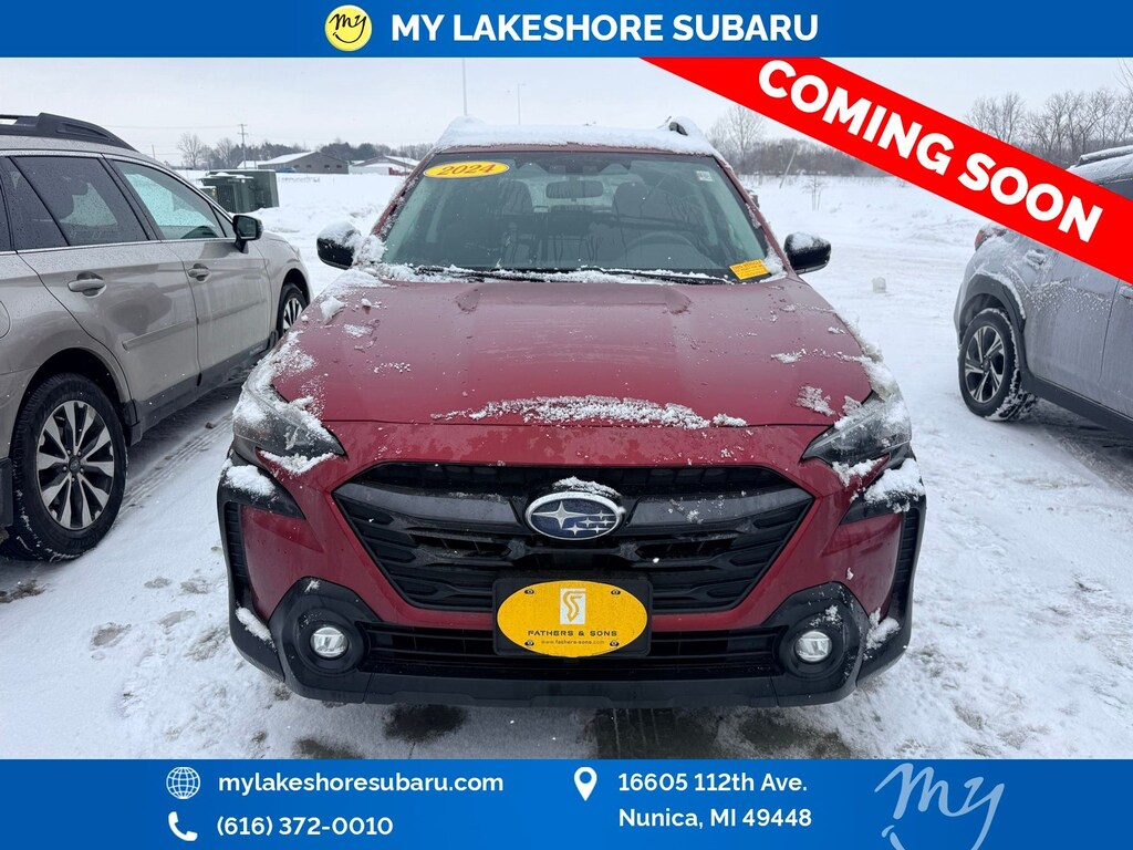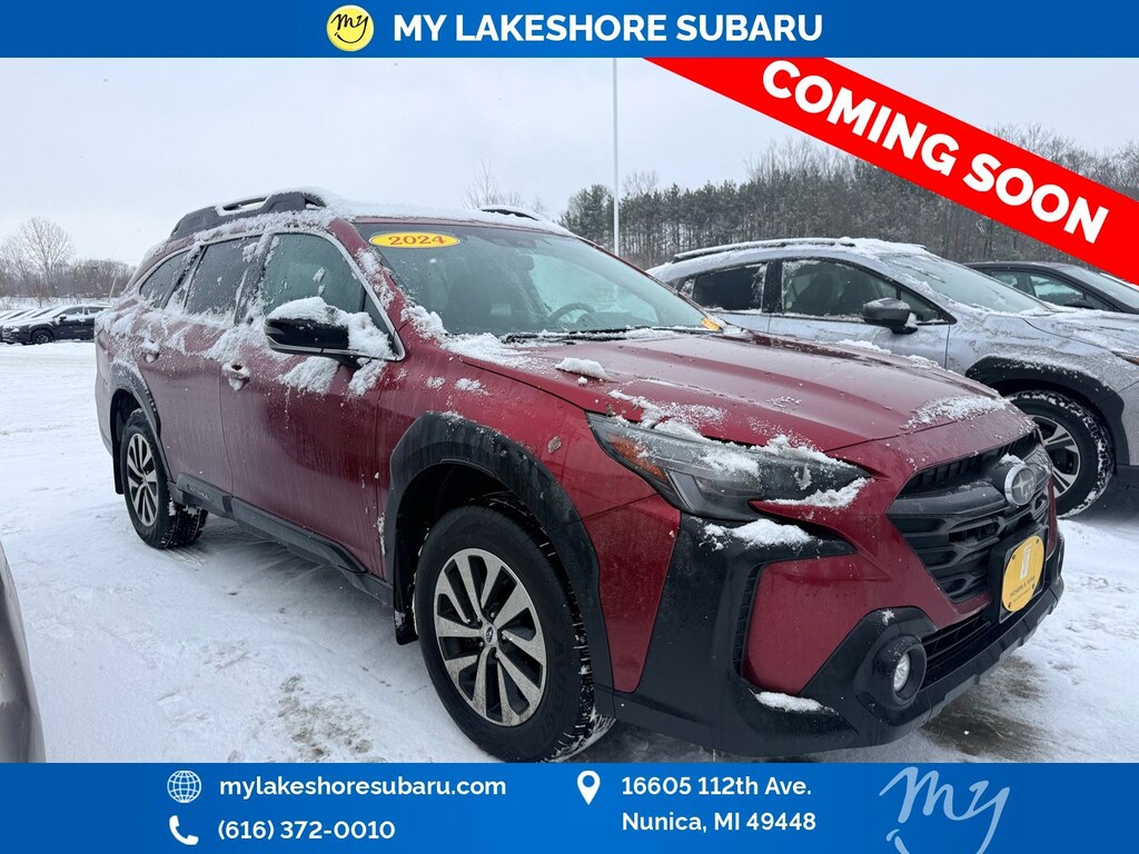 Outback Premium, Crimson Red Pearl, *ALL WHEEL DRIVE*, *APPLE CARPLAY & ANDROID AUTO*, *EYESIGHT Driver Assist*, *HEATED SEATS*, *LANE DEPARTURE WARNING*, *OIL CHANGES for LIFE*. Certified. Crimson Red Pearl 2024 Subaru Outback Premium AWD CVT Lineartronic 2.5L 4-Cylinder DOHC 16V