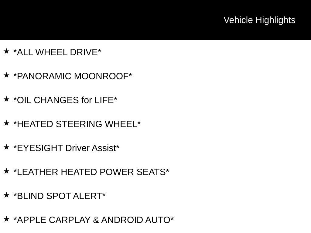 - Adaptive Cruise Control: EyeSight Adaptive Cruise Control