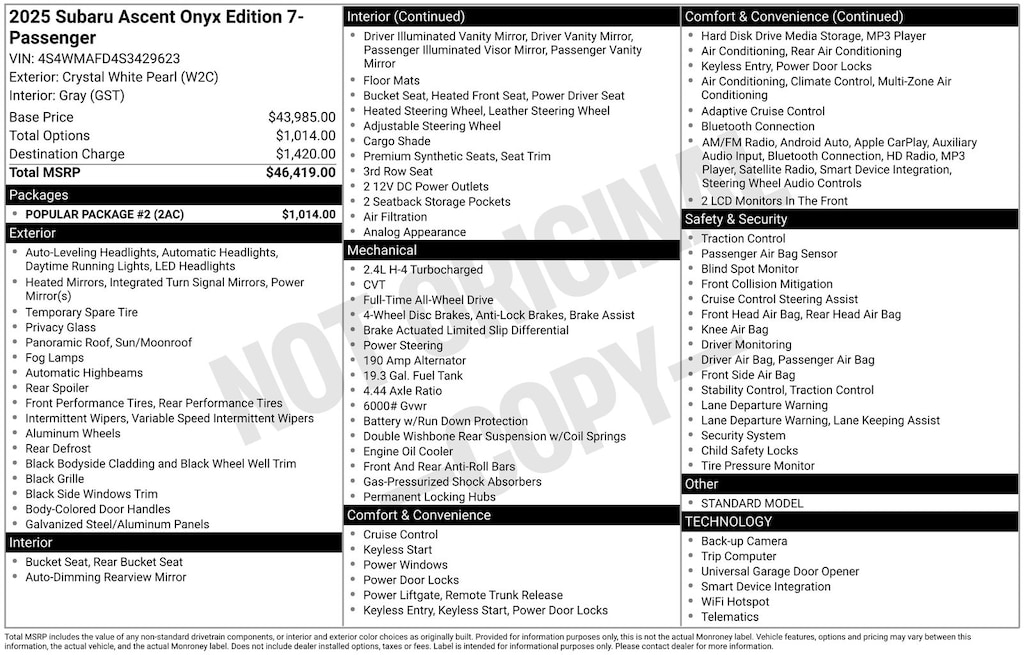 2025 Subaru Ascent Onyx Edition 7-Passenger