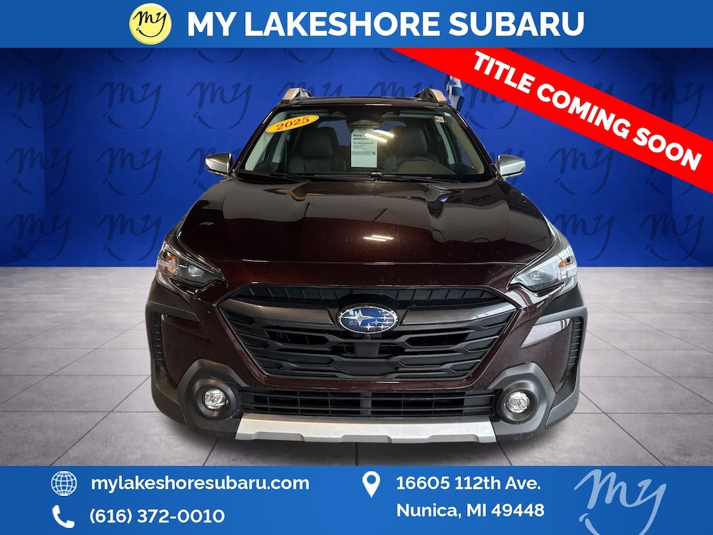 Outback Touring, Dark Mahogany Pearl, *ALL WHEEL DRIVE*, *APPLE CARPLAY & ANDROID AUTO*, *EYESIGHT Driver Assist*, *HEATED REAR Seats*, *HEATED STEERING WHEEL*, *LANE DEPARTURE WARNING*, *LEATHER HEATED POWER SEATS*, *MOONROOF*, *OIL CHANGES for LIFE*, *REARVIEW CAMERA*. Certified. Dark Mahogany Pearl 2025 Subaru Outback Touring AWD CVT Lineartronic 2.5L 4-Cylinder DOHC 16V