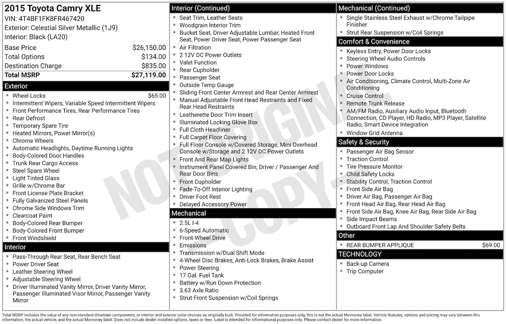Camry XLE, Celestial Silver Metallic, *BACKUP CAMERA*, *LEATHER HEATED POWER SEATS*, *LOCAL TRADE*, ABS brakes, Alloy wheels, Electronic Stability Control, Front dual zone A/C, Heated door mirrors, Heated front seats, Illuminated entry, Leather Seat Trim, Low tire pressure warning, Remote keyless entry, Traction control. Celestial Silver Metallic 2015 Toyota Camry XLE FWD 6-Speed Automatic 2.5L I4 SMPI DOHC