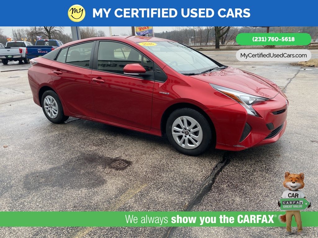 1.8L 4-Cylinder DOHC 16V VVT-i. MY Certified Used Cars of Muskegon is your #1 choice in Michigan to get the BEST PRICE on used vehicles and BEST value for your trade. The MY Certified Used Cars team is ready to provide you with a world-class experience, ensuring that you find the perfect vehicle that fits all your needs. Every vehicle has been through a full safety inspection completed by certified technicians and fully detailed. We sell many makes and models, Pre-Owned Vehicles with years from 2025-2024-2023-2022-2021-2020-2019-2018-2017-2016-2015-2014-2013-2012-2011-2010-2009-2008-2007 and all makes Audi, BMW, Chevrolet, Toyota, Volkswagen, Kia, Hyundai, Mercedes, Dodge, Chrysler, Jeep, Ram, Lincoln, Honda, Subaru, and many models like Bronco, Bronco Sport, Edge, Escapes, Expedition, Explorer, Fusions, Focus, Flex, F-150 Series, F-250, F-350, Super Duty Diesel Trucks, Maverick, Mustang MACH-E, Mustang, Ranger, Transit, Wrangler, Grand Cherokee, Grand Cherokee L, Wagoneer, Gladiator, Grand Caravan, RAM, RAM HEMI, and more. Take advantage of our VIP experience by calling 231-760-5618 to schedule a test drive. Read our customer reviews at www.mycertifiedusedcars.com/testimonials or view our entire selection of preowned vehicles at www.mycertifiedusedcars.com, or stop by today, located at 3692 Airline Rd. Muskegon, MI 49444. CARFAX One-Owner. Red 2016 Toyota Prius Two FWD CVT 1.8L 4-Cylinder DOHC 16V VVT-i