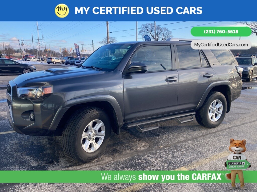 4WD, Cloth. MY Certified Used Cars of Muskegon is your #1 choice in Michigan to get the BEST PRICE on used vehicles and BEST value for your trade. The MY Certified Used Cars team is ready to provide you with a world-class experience, ensuring that you find the perfect vehicle that fits all your needs. Every vehicle has been through a full safety inspection completed by certified technicians and fully detailed. We sell many makes and models, Pre-Owned Vehicles with years from 2025-2024-2023-2022-2021-2020-2019-2018-2017-2016-2015-2014-2013-2012-2011-2010-2009-2008-2007 and all makes Audi, BMW, Chevrolet, Toyota, Volkswagen, Kia, Hyundai, Mercedes, Dodge, Chrysler, Jeep, Ram, Lincoln, Honda, Subaru, and many models like Bronco, Bronco Sport, Edge, Escapes, Expedition, Explorer, Fusions, Focus, Flex, F-150 Series, F-250, F-350, Super Duty Diesel Trucks, Maverick, Mustang MACH-E, Mustang, Ranger, Transit, Wrangler, Grand Cherokee, Grand Cherokee L, Wagoneer, Gladiator, Grand Caravan, RAM, RAM HEMI, and more. Take advantage of our VIP experience by calling 231-760-5618 to schedule a test drive. Read our customer reviews at www.mycertifiedusedcars.com/testimonials or view our entire selection of preowned vehicles at www.mycertifiedusedcars.com, or stop by today, located at 3692 Airline Rd. Muskegon, MI 49444. Gray 2017 Toyota 4Runner SR5 4WD 5-Speed Automatic with Overdrive 4.0L V6 SMPI DOHC
