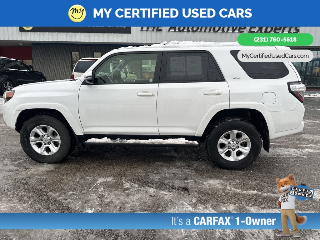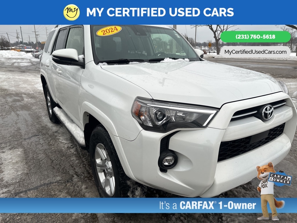 4WD. MY Certified Used Cars of Muskegon is your #1 choice in Michigan to get the BEST PRICE on used vehicles and BEST value for your trade. The MY Certified Used Cars team is ready to provide you with a world-class experience, ensuring that you find the perfect vehicle that fits all your needs. Every vehicle has been through a full safety inspection completed by certified technicians and fully detailed. We sell many makes and models, Pre-Owned Vehicles with years from 2025-2024-2023-2022-2021-2020-2019-2018-2017-2016-2015-2014-2013-2012-2011-2010-2009-2008-2007 and all makes Audi, BMW, Chevrolet, Toyota, Volkswagen, Kia, Hyundai, Mercedes, Dodge, Chrysler, Jeep, Ram, Lincoln, Honda, Subaru, and many models like Bronco, Bronco Sport, Edge, Escapes, Expedition, Explorer, Fusions, Focus, Flex, F-150 Series, F-250, F-350, Super Duty Diesel Trucks, Maverick, Mustang MACH-E, Mustang, Ranger, Transit, Wrangler, Grand Cherokee, Grand Cherokee L, Wagoneer, Gladiator, Grand Caravan, RAM, RAM HEMI, and more. Take advantage of our VIP experience by calling 231-760-5618 to schedule a test drive. Read our customer reviews at www.mycertifiedusedcars.com/testimonials or view our entire selection of preowned vehicles at www.mycertifiedusedcars.com, or stop by today, located at 3692 Airline Rd. Muskegon, MI 49444. White 2024 Toyota 4Runner SR5 Premium 4WD 5-Speed with ECT 4.0L V6 DOHC 24V Clean CARFAX.
