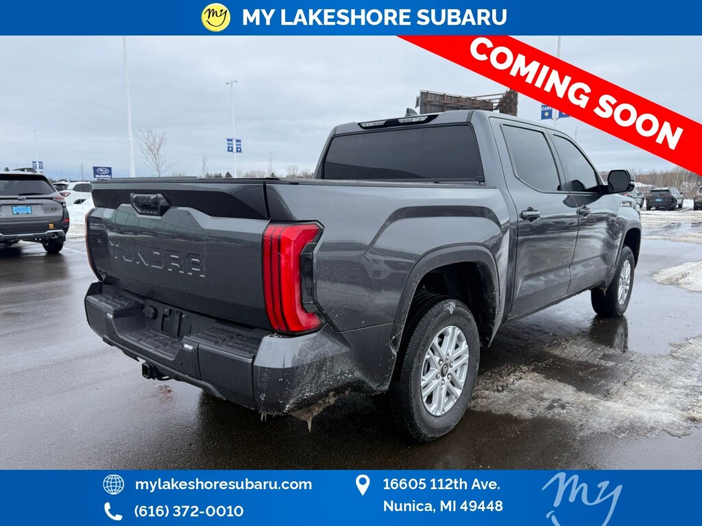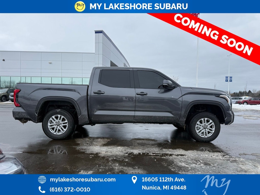 Tundra SR5, 4WD, Magnetic Gray Metallic, *ADAPTIVE CRUISE*, *APPLE CARPLAY & ANDROID AUTO*, *LANE DEPARTURE WARNING*, *LOCAL TRADE*, *OIL CHANGES for LIFE*, *Trailer TOW Package*, 122L Fuel Tank, Blind Spot Monitor w/Lane Change Assist, Fabric Seat Trim, Non-Skid Spray-On Bed Liner (TMS), Parking Support Alert/Brake, SR5 Convenience Package, SX Package, TRD Cast Aluminum Running Board (TMS), Wheels: 18" Dark Gray Metallic Alloy. Magnetic Gray Metallic 2025 Toyota Tundra SR5 4WD 10-Speed Automatic 3.4L V6