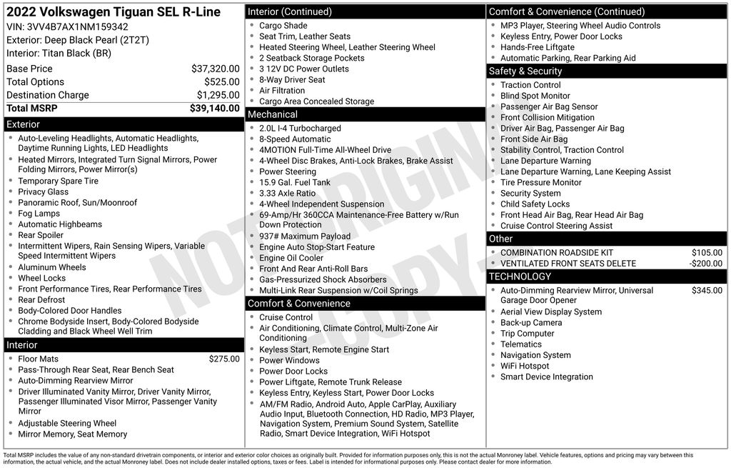 Deep Black 2022 Volkswagen Tiguan 2.0T SEL R-Line 2.0L TSI DOHC AWD